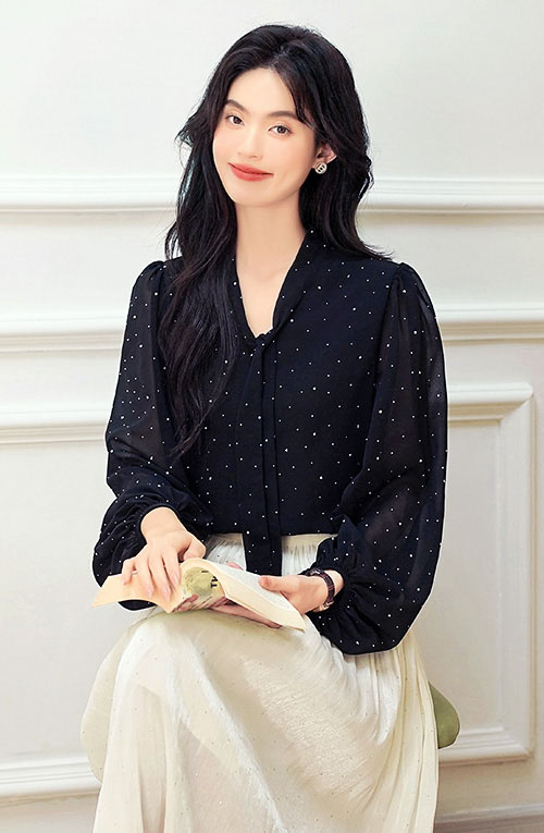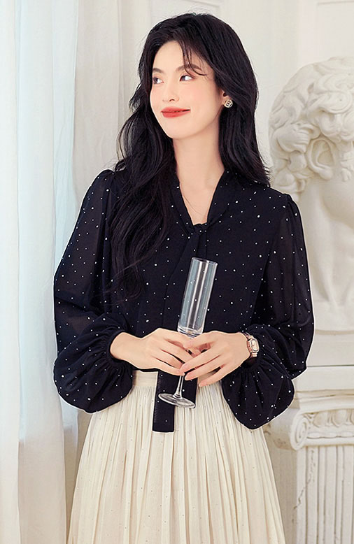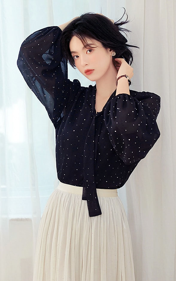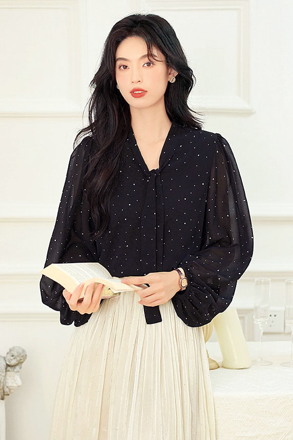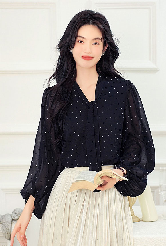 Feature | VNeckline Dating OfficeC Ribbon PolkaDotsM Black |