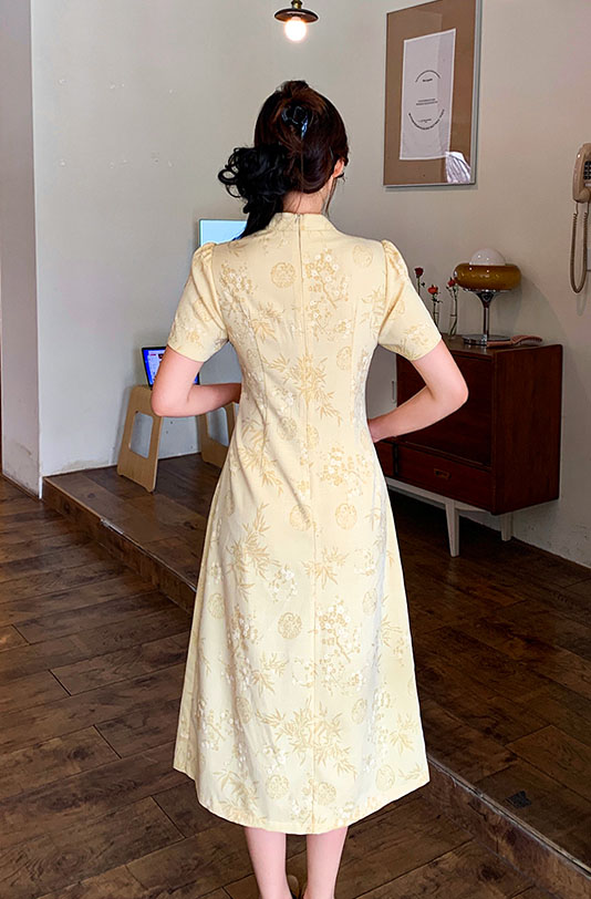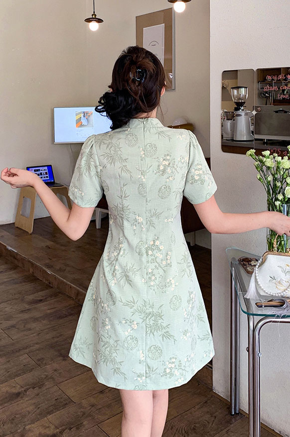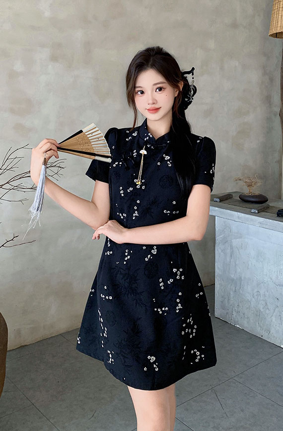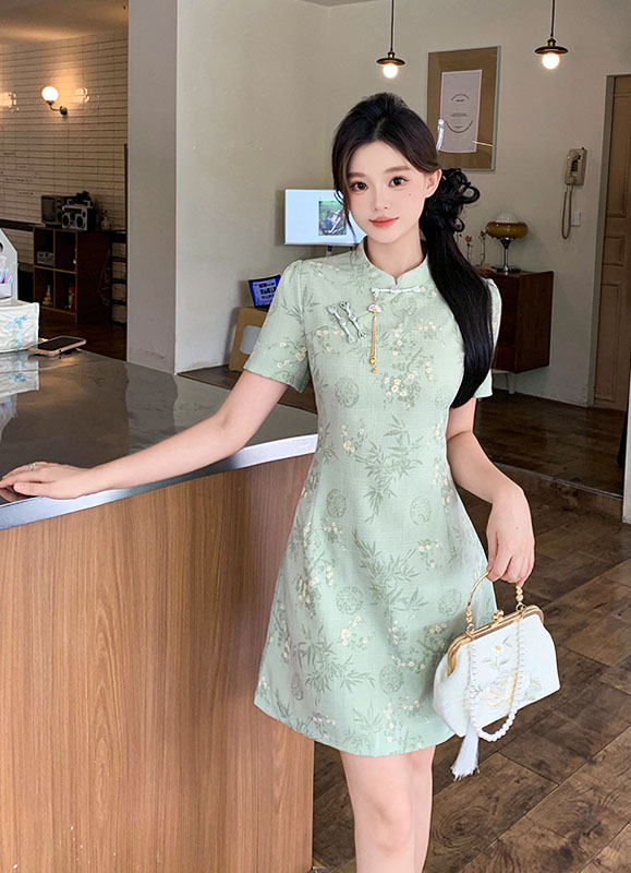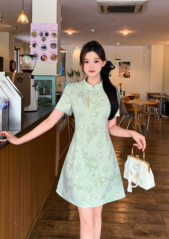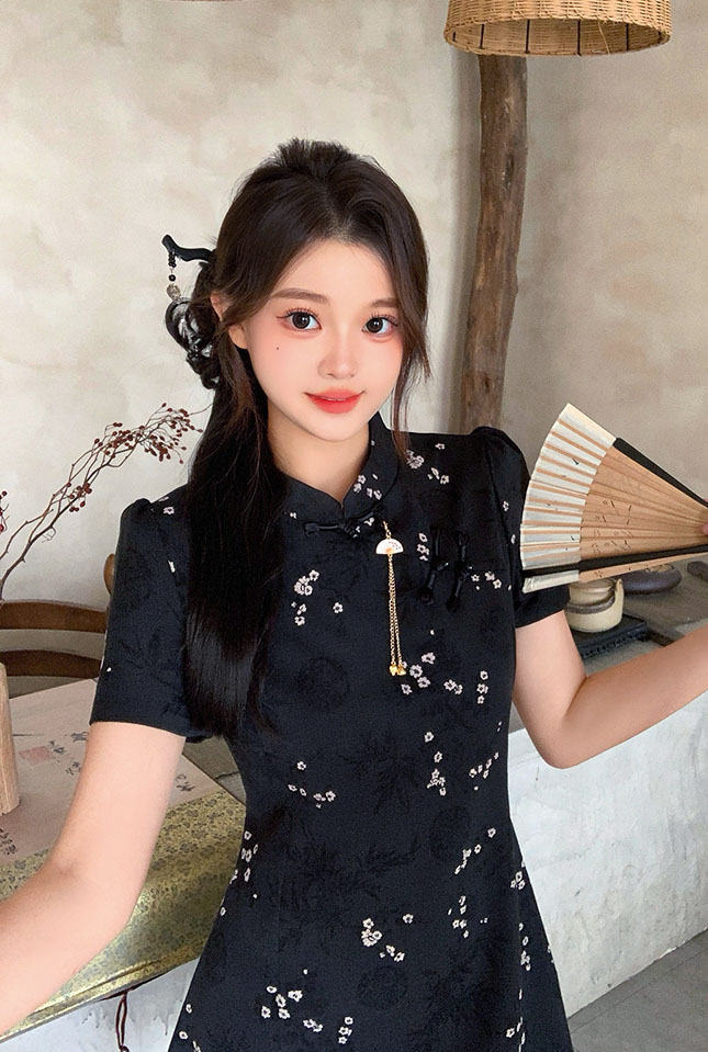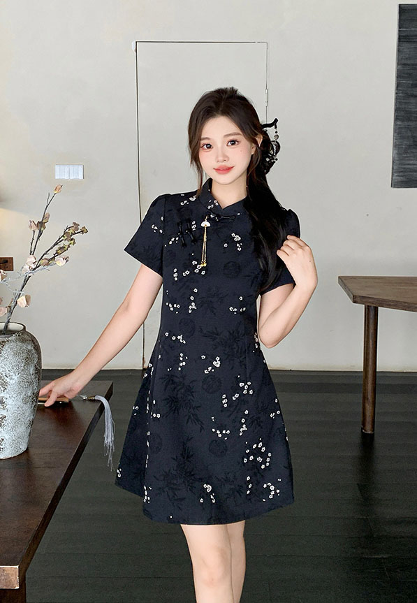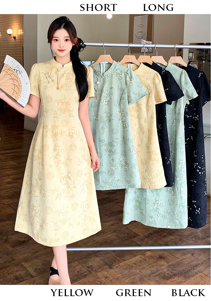 Feature | RoundNeckline Dating HighNeckline DinnerC Cheongsam FloraM Plus FloralM Black Green Yellow |