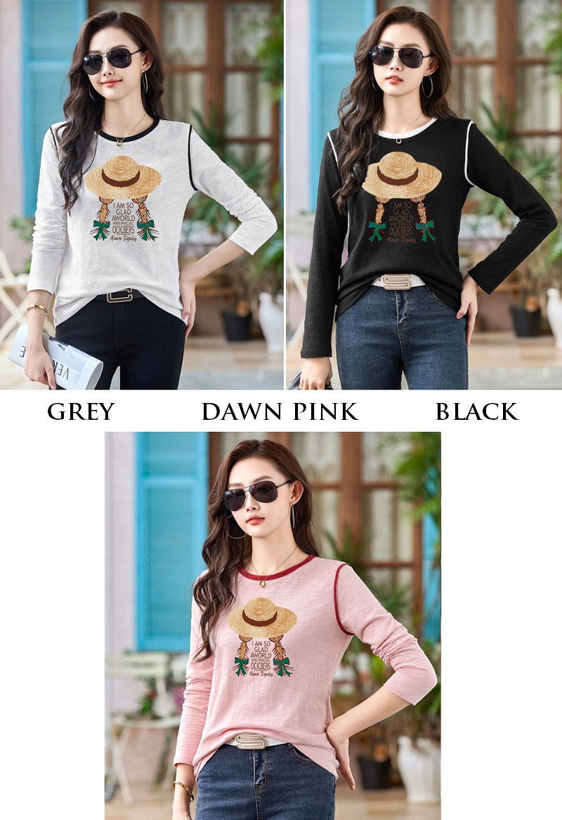Feature | RoundNeckline T-Shirt Dating Casual PatternM Plus MixC Black Pink Grey |