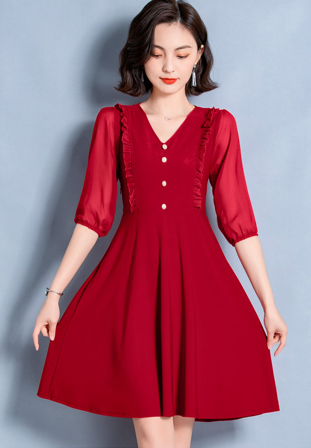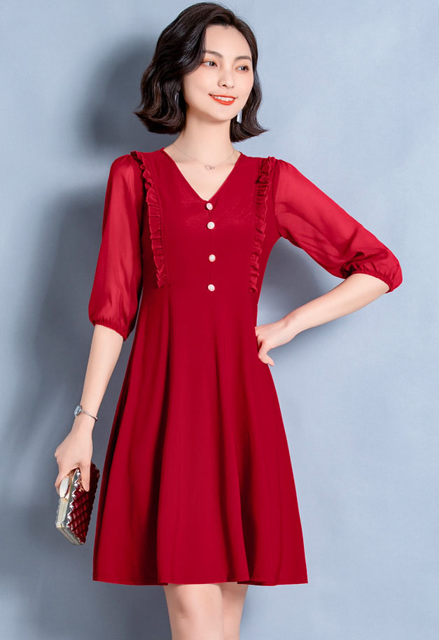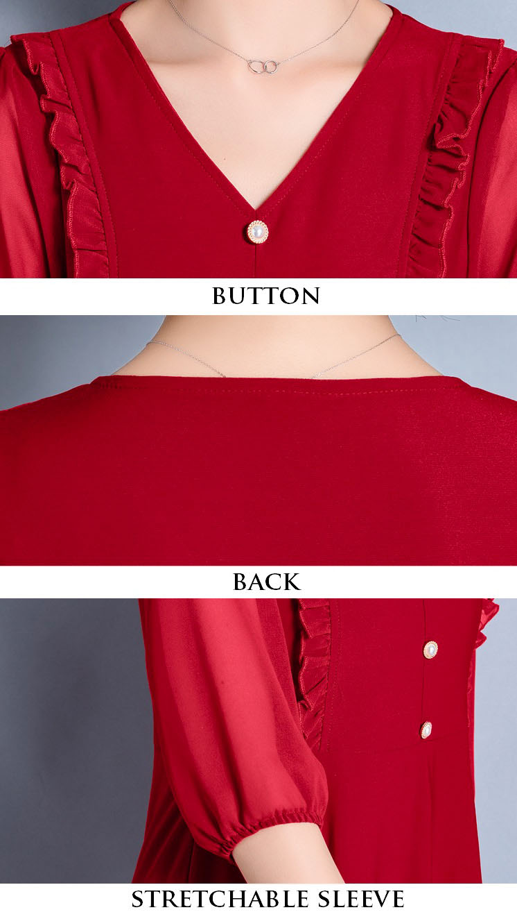 Feature | VNeckline Dating Plus OfficeC DinnerC Ruffle PlainP Black Blue Red |