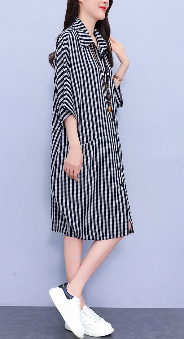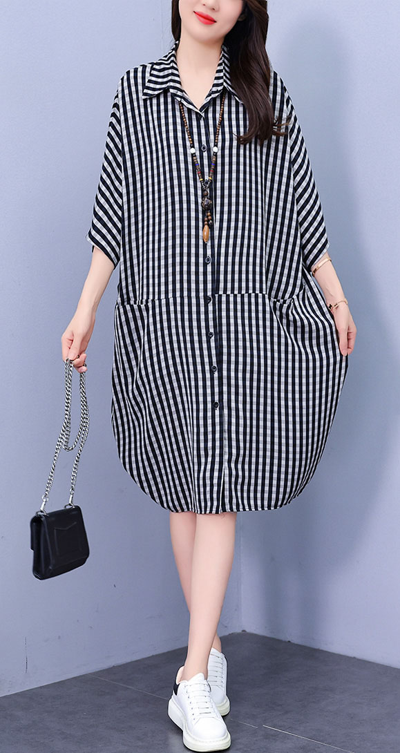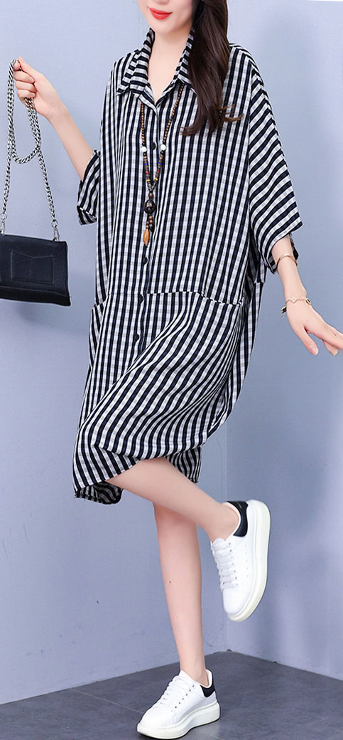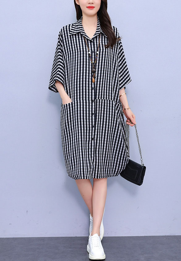 Feature | RoundNeckline Dating EPlus Casual OfficeC A-Line Pockets Irregular Collar PlaidM Black |