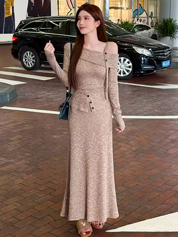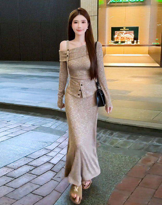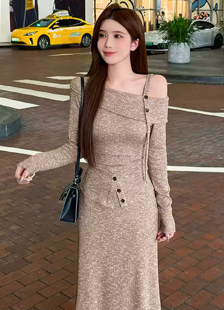 | Feature | VNeckline Dating DinnerC Bodycon OneShoulder Off-Shoulder Irregular Strap Girlish PlainM Khaki |