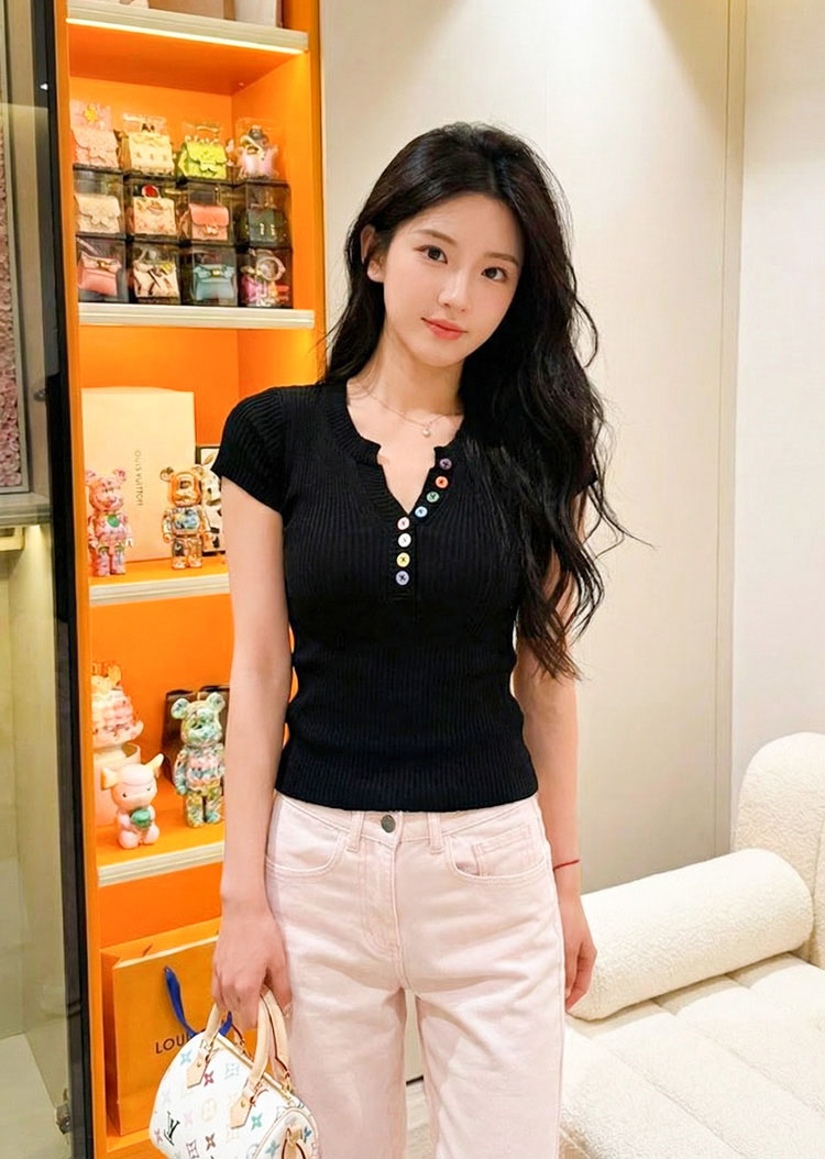 | Feature | RoundVNeckline Dating ESmall Casual PlainP LinesP Bodycon T-Shirt Black Blue Grey Pink Purple Yellow |