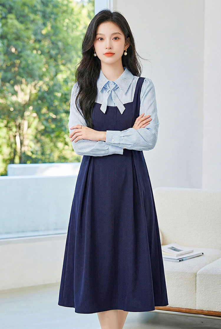 | Feature | RoundNeckline Dating OfficeC Collar Ribbon LinesM Blue |