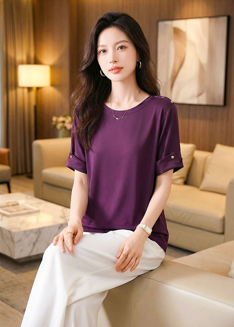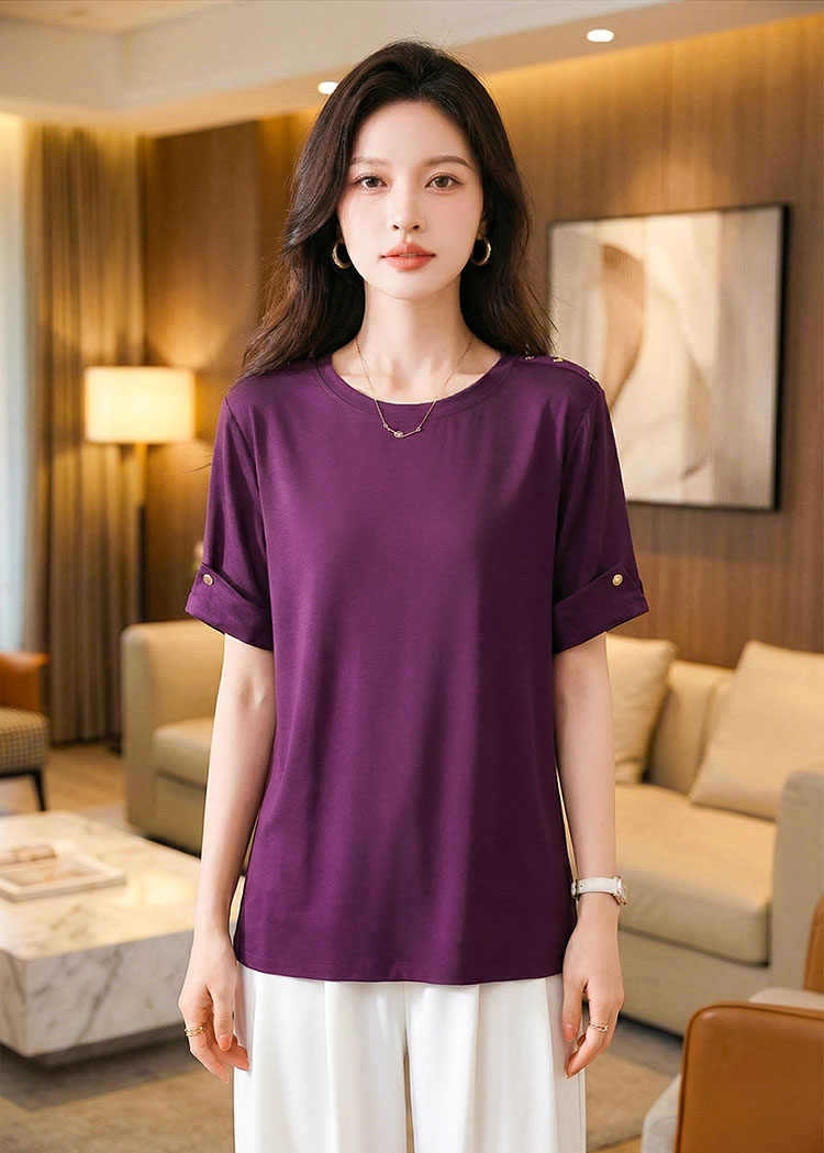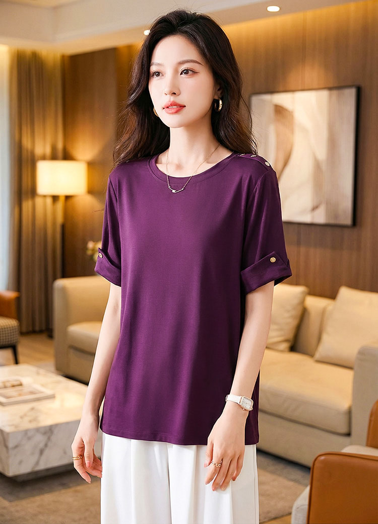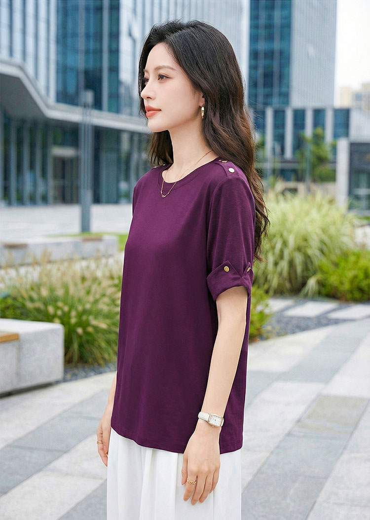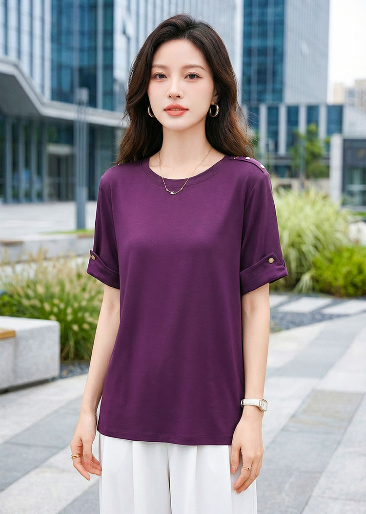 | Feature | RoundNeckline Plus Dating Casual T-Shirt Irregular PlainP Purple |