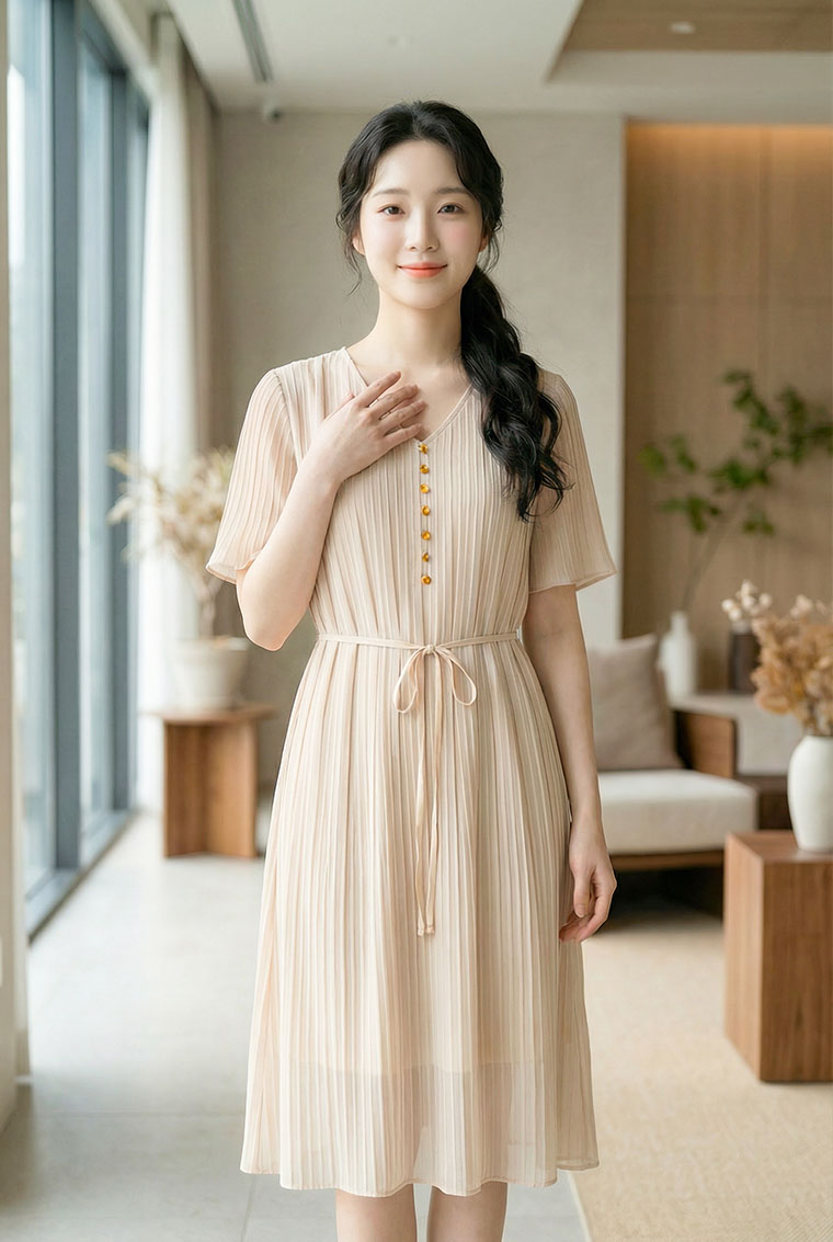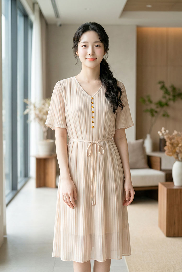 | Feature | VNeckline Dating Ribbon OfficeC Plus A-Line Button PlainP Apricot |