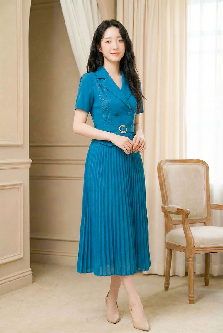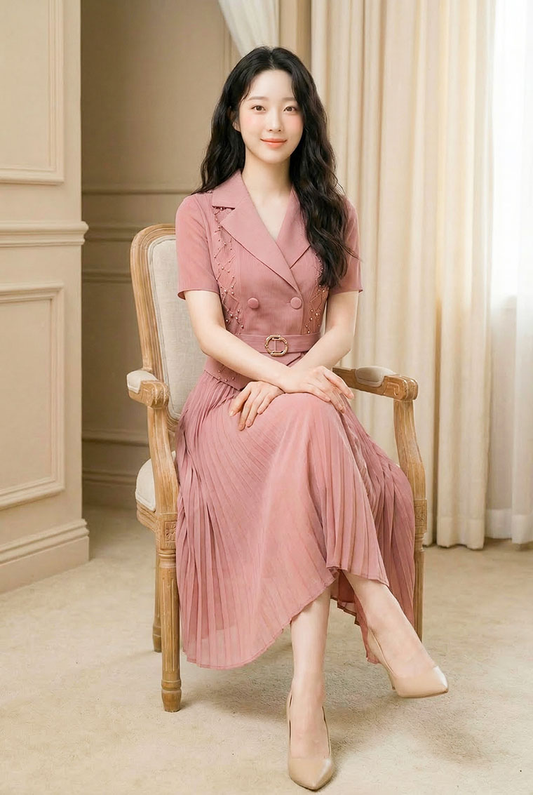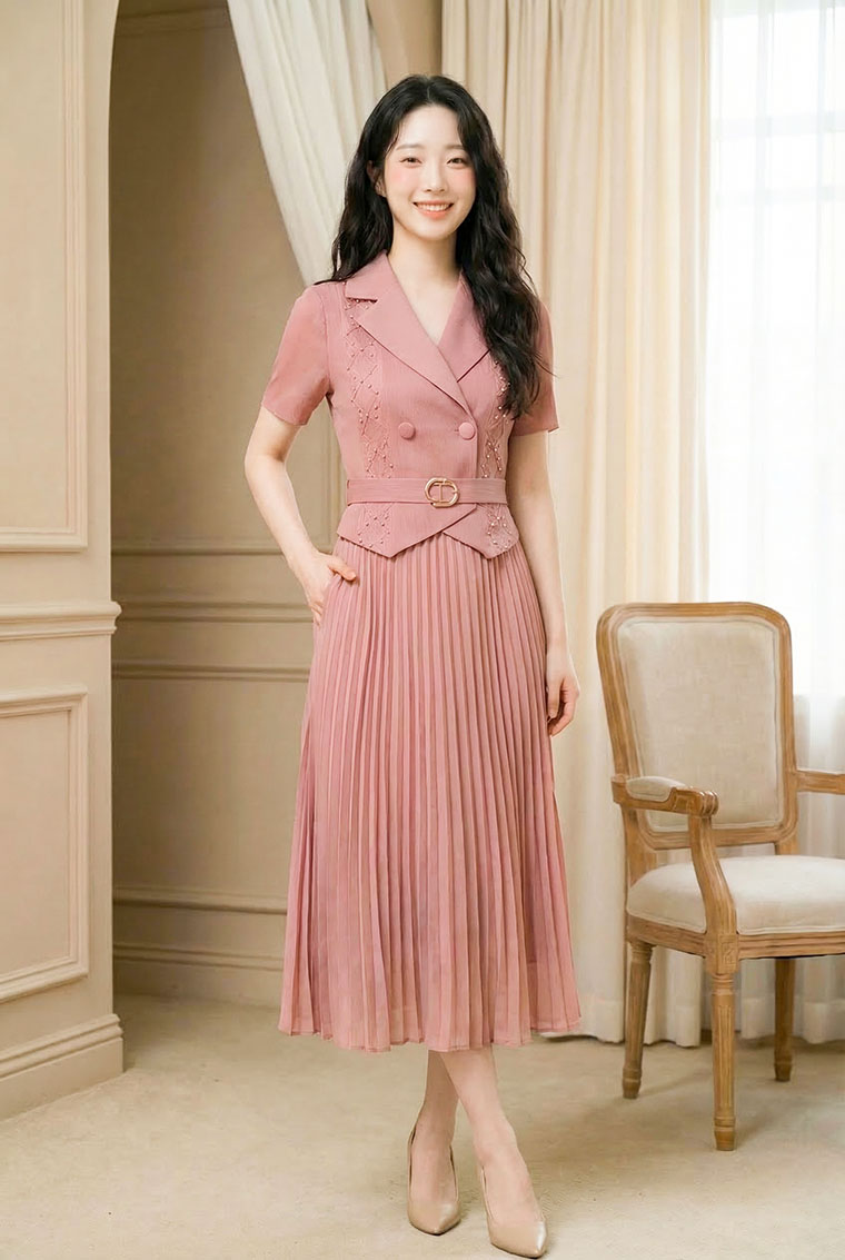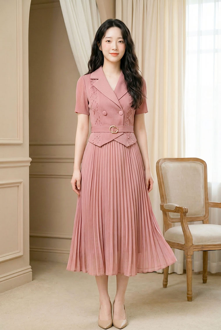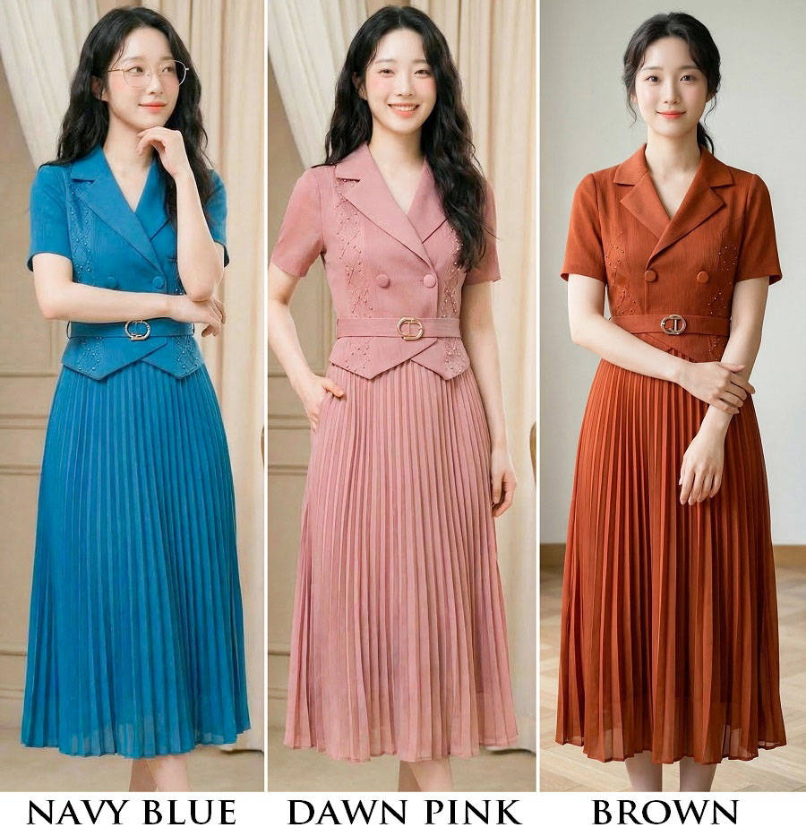 | Feature | VNeckline Dating Pleated DinnerC PlainP ESmall Collar Pink Blue Brown |