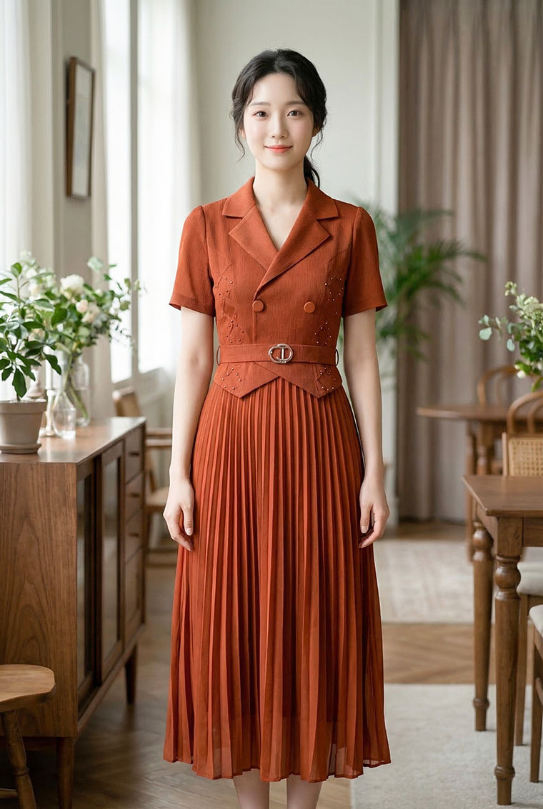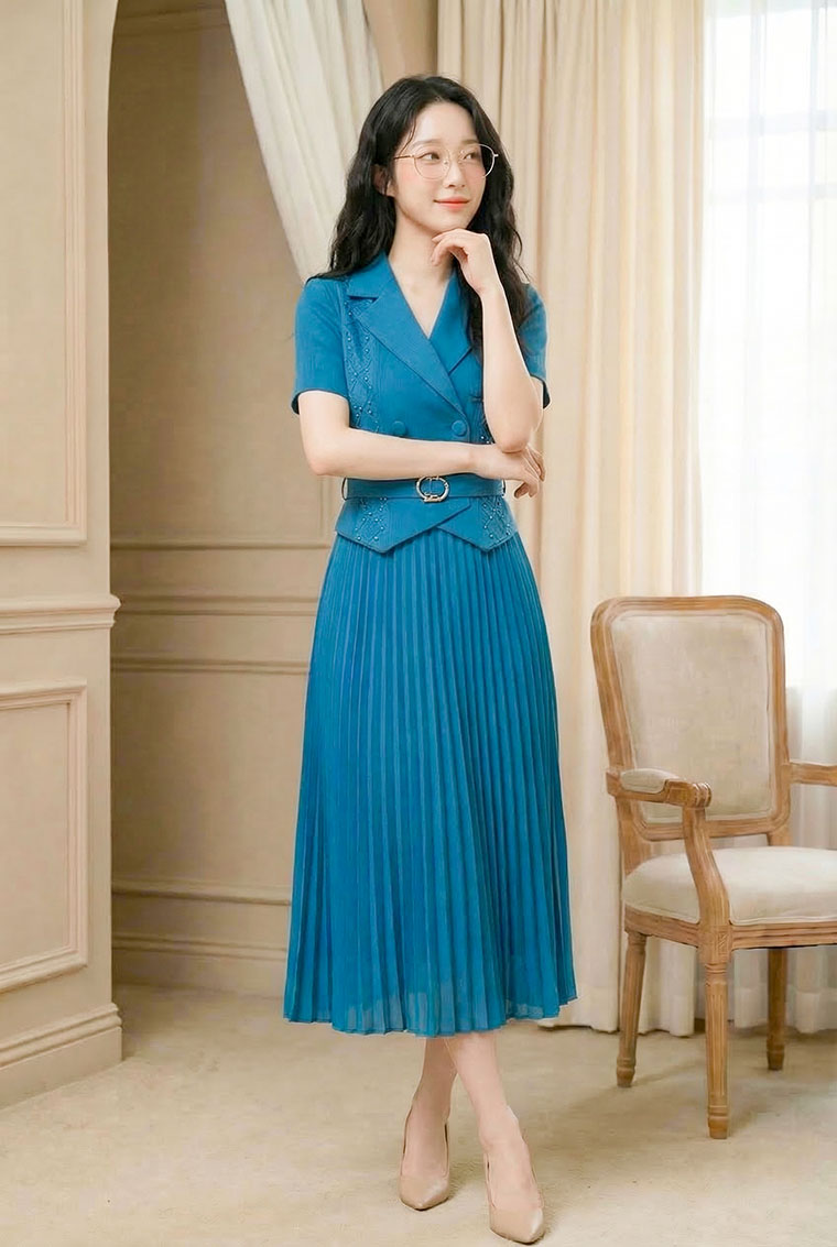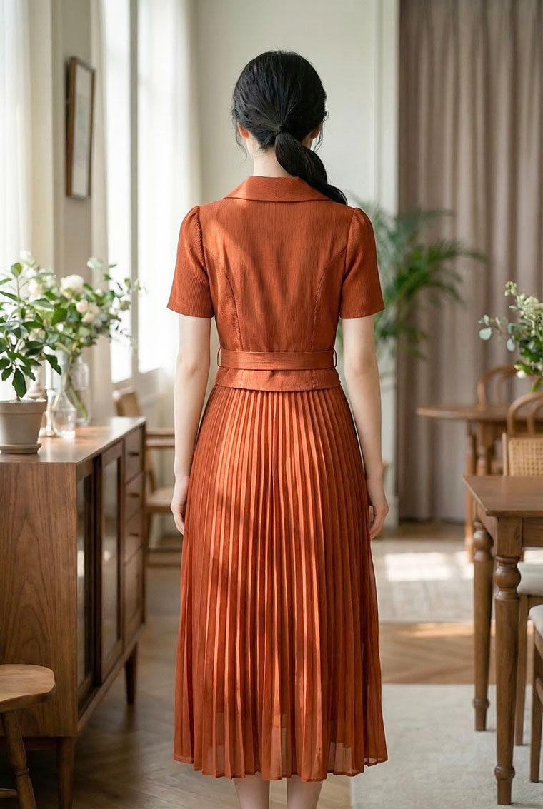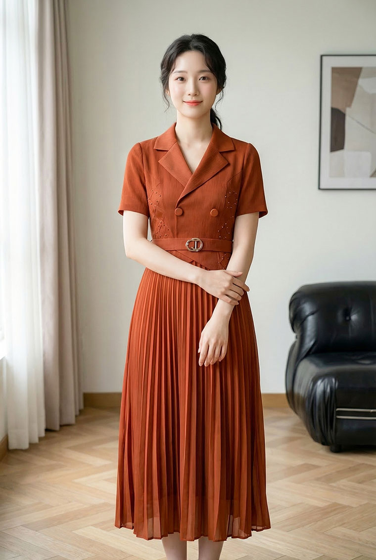 | Feature | VNeckline Dating Pleated DinnerC PlainP ESmall Collar Pink Blue Brown |