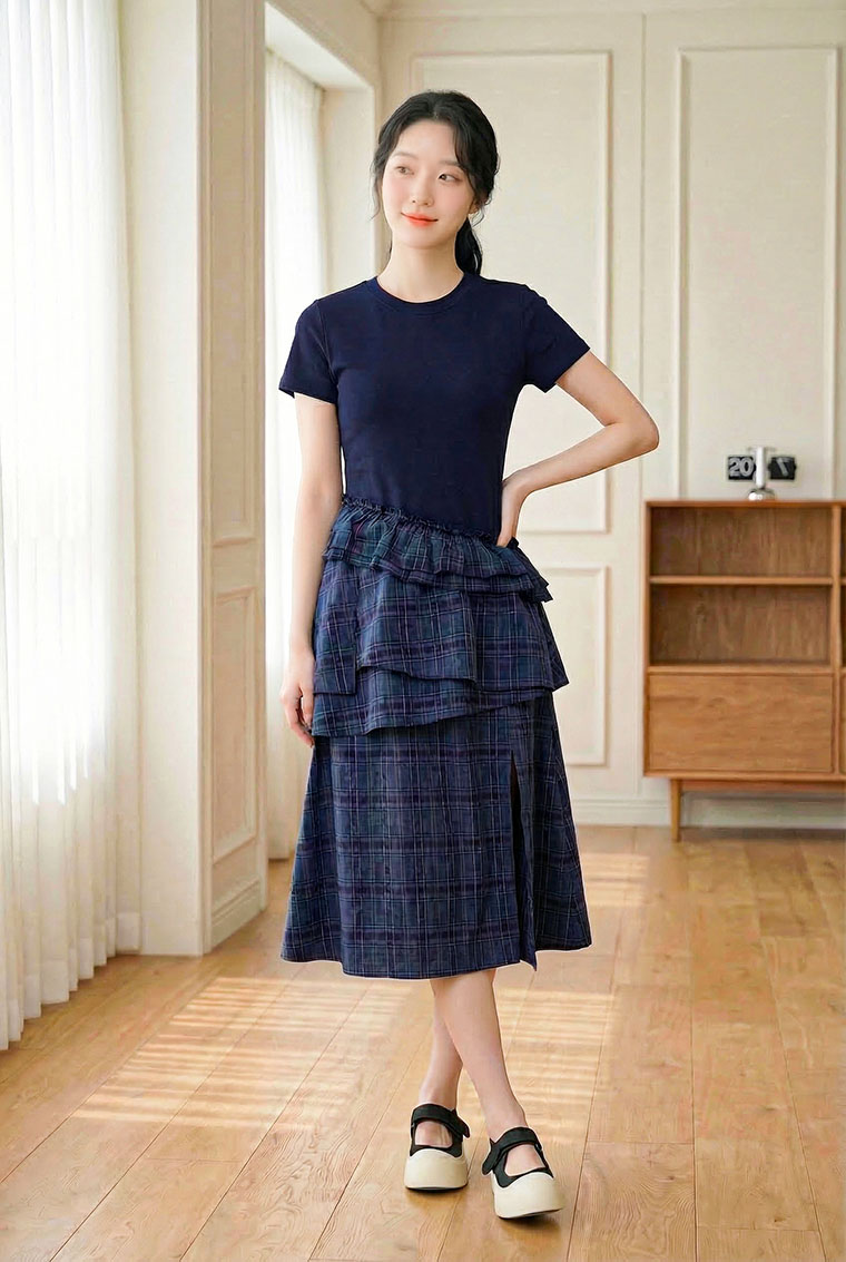 | Feature | RoundNeckline Dating OfficeC Layers Irregular Girlish Slit PlainM Blue |