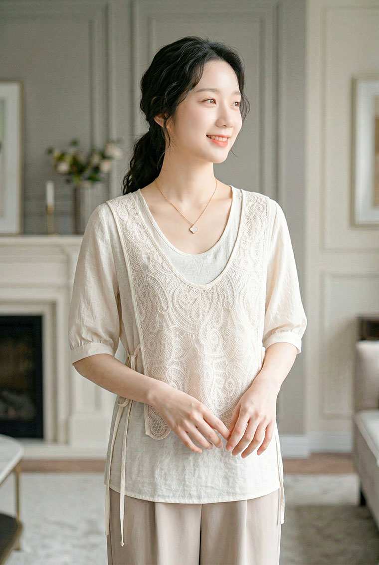 | Feature | RoundNeckline Dating Casual Party LineP Apricot |
