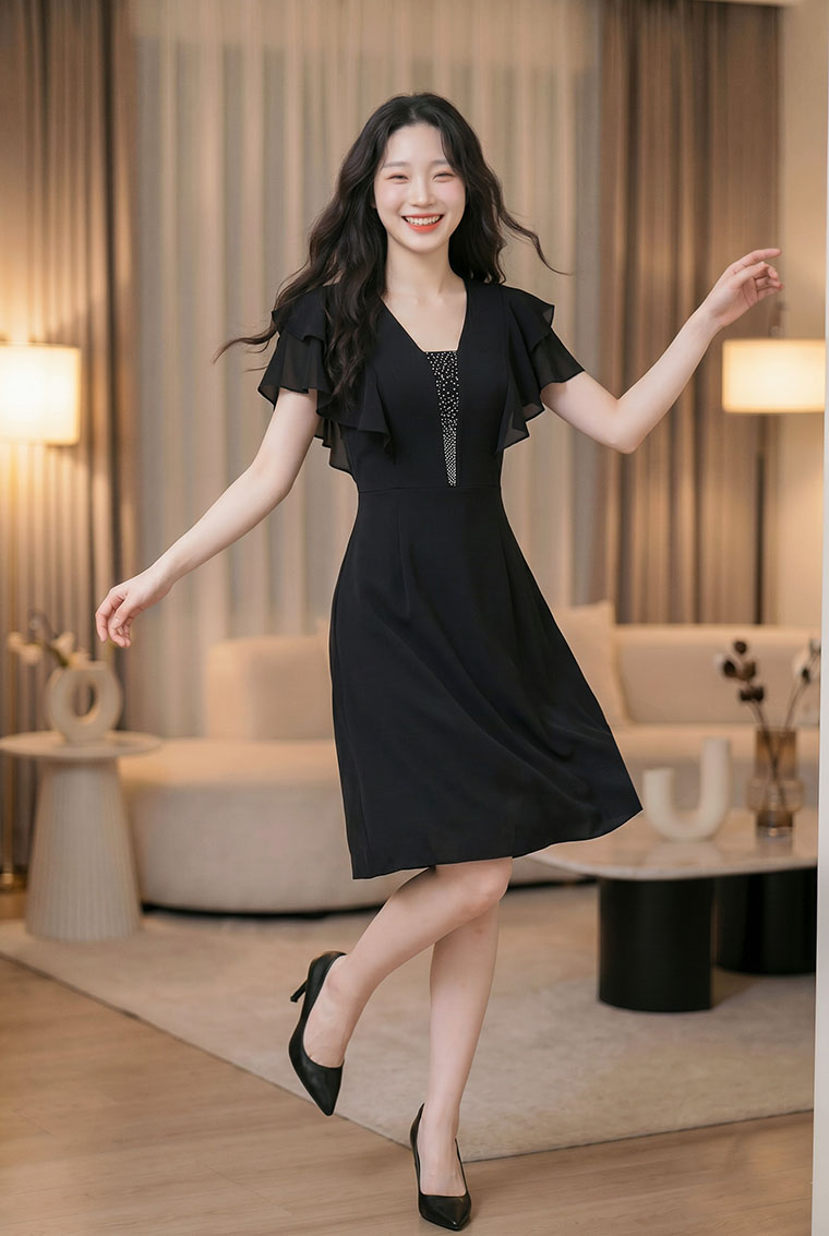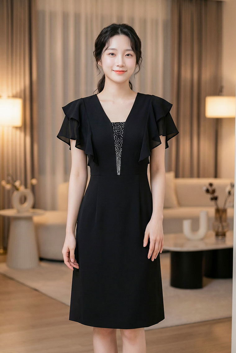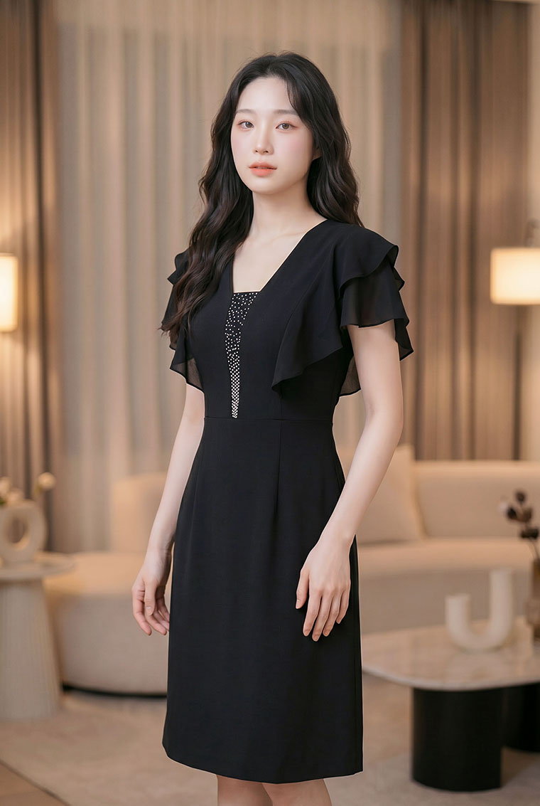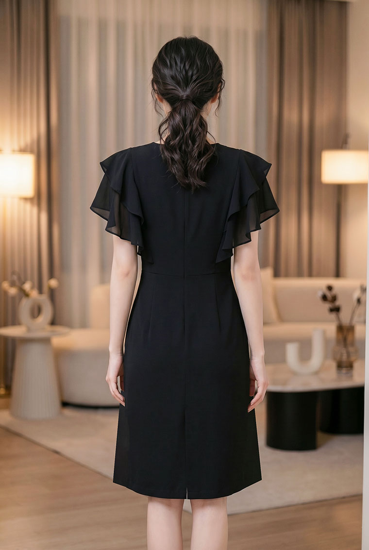 | Feature | VNeckline Layers Dating Party RuffleSleeve PlainP Black |