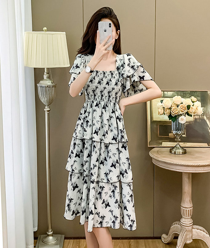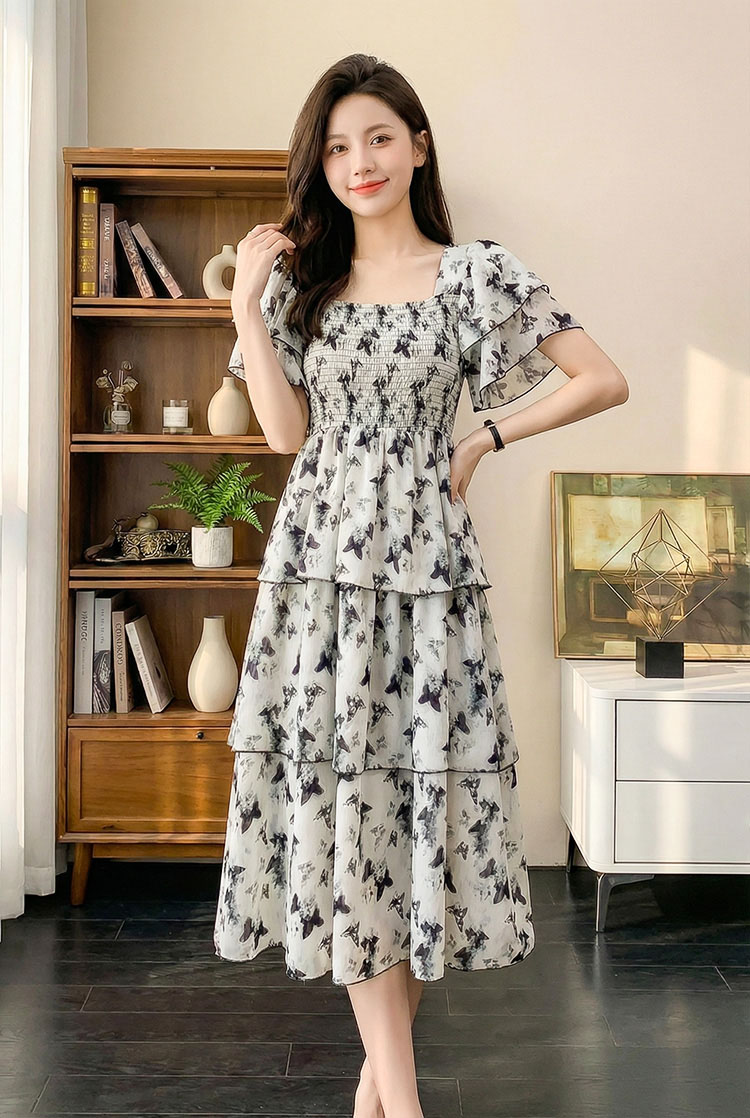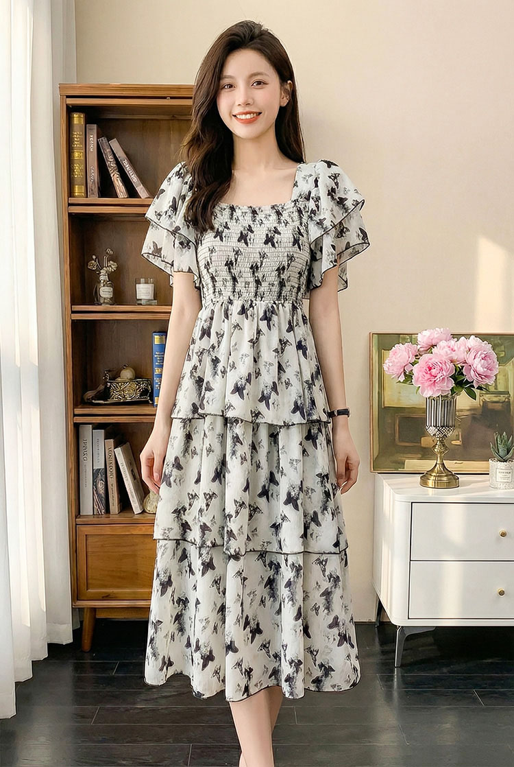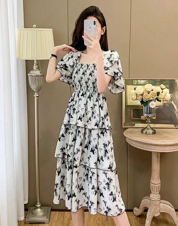 | Feature | SquareNeckline Dating DinnerC Layers BellS Butterfly Ribbon Plus Girlish Smocked MixC Black |