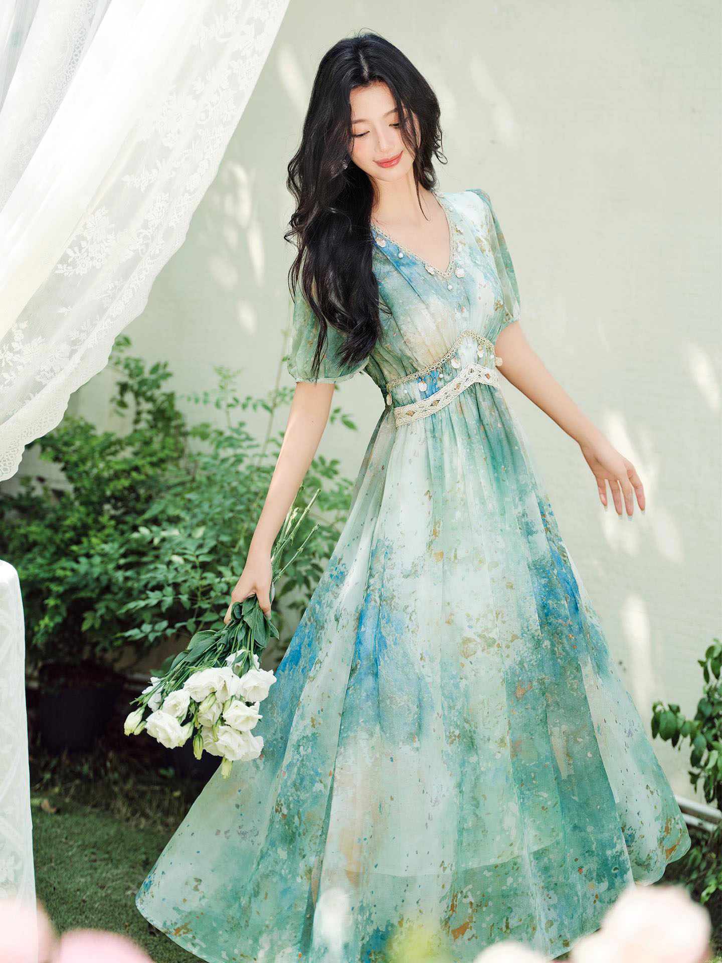 Feature | VNeckline Dating DinnerC Irregular Beach MixC Green |