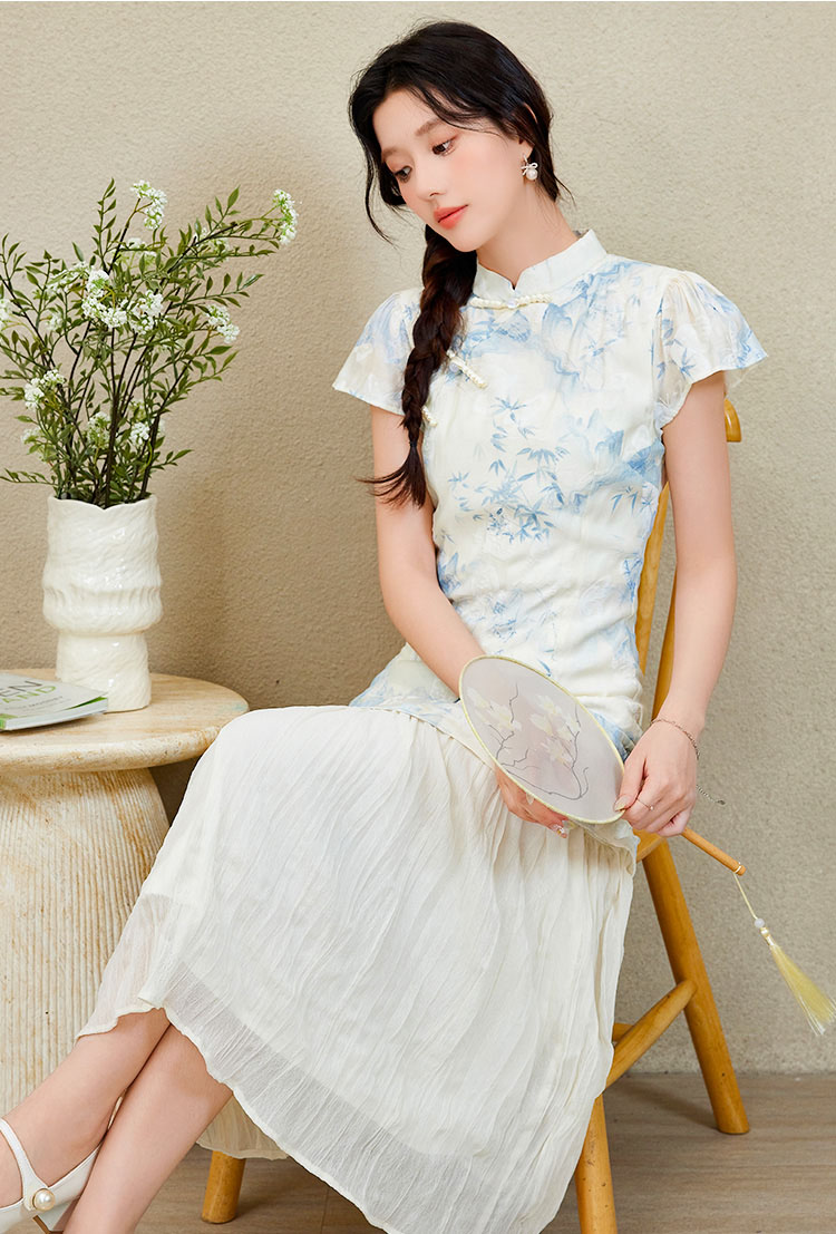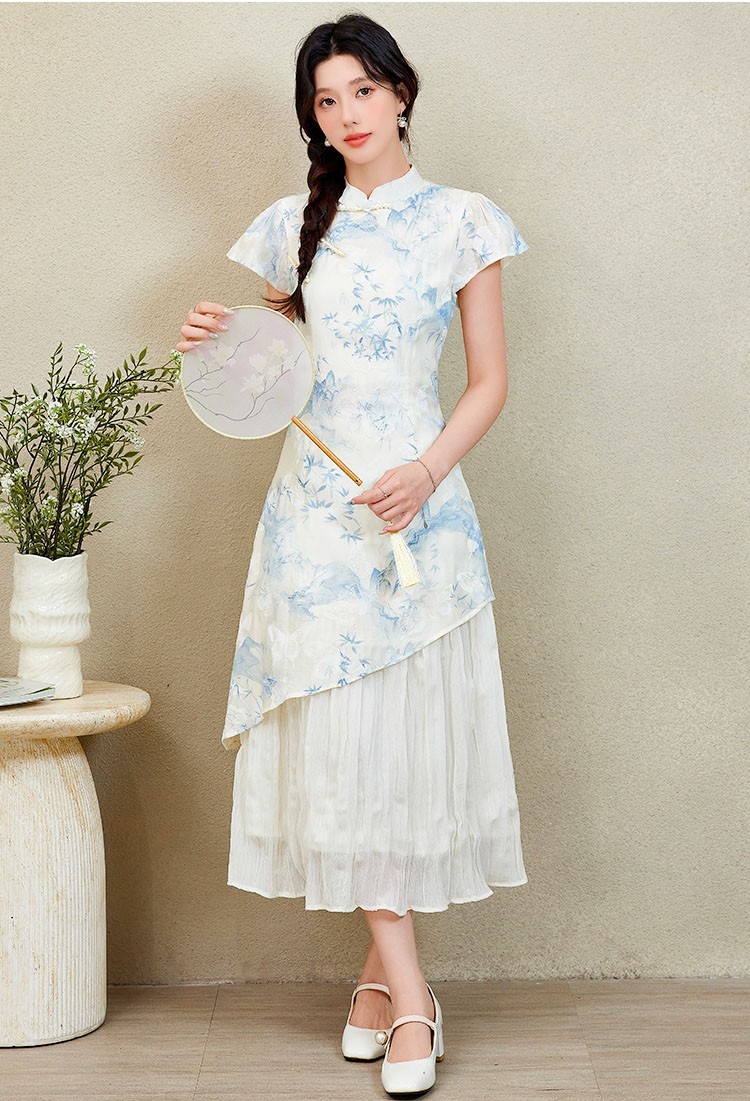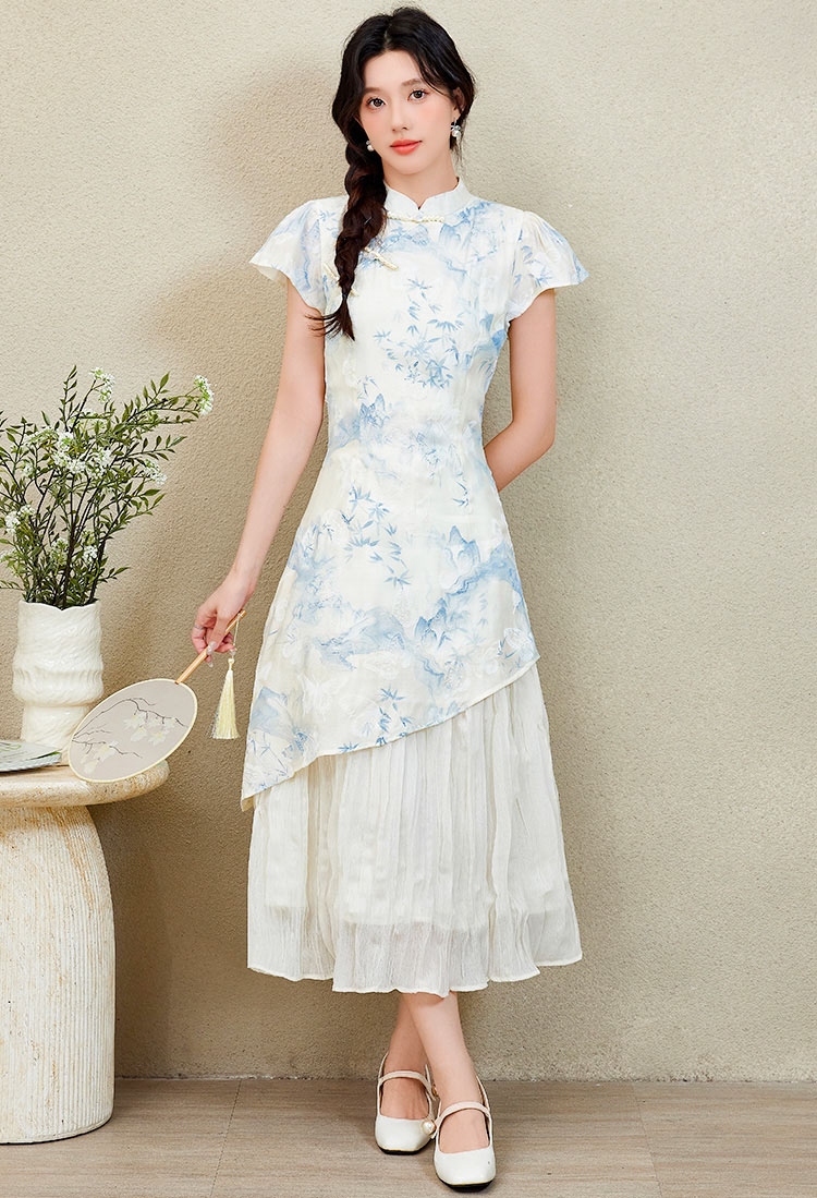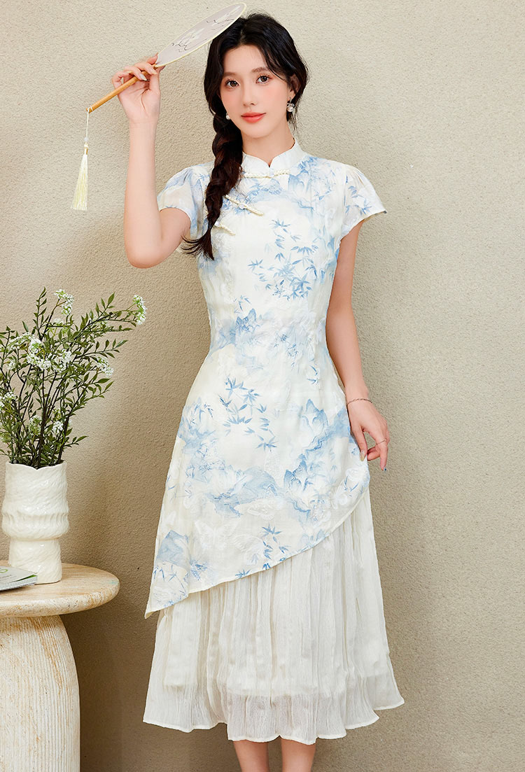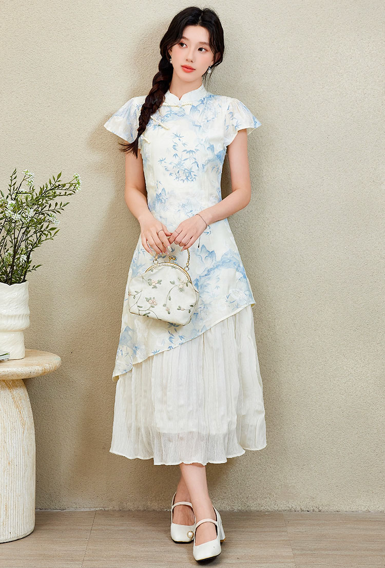 | Feature | RoundNeckline Dating HighNeckline DinnerC FloraM FloralM Irregular Cheongsam Blue |