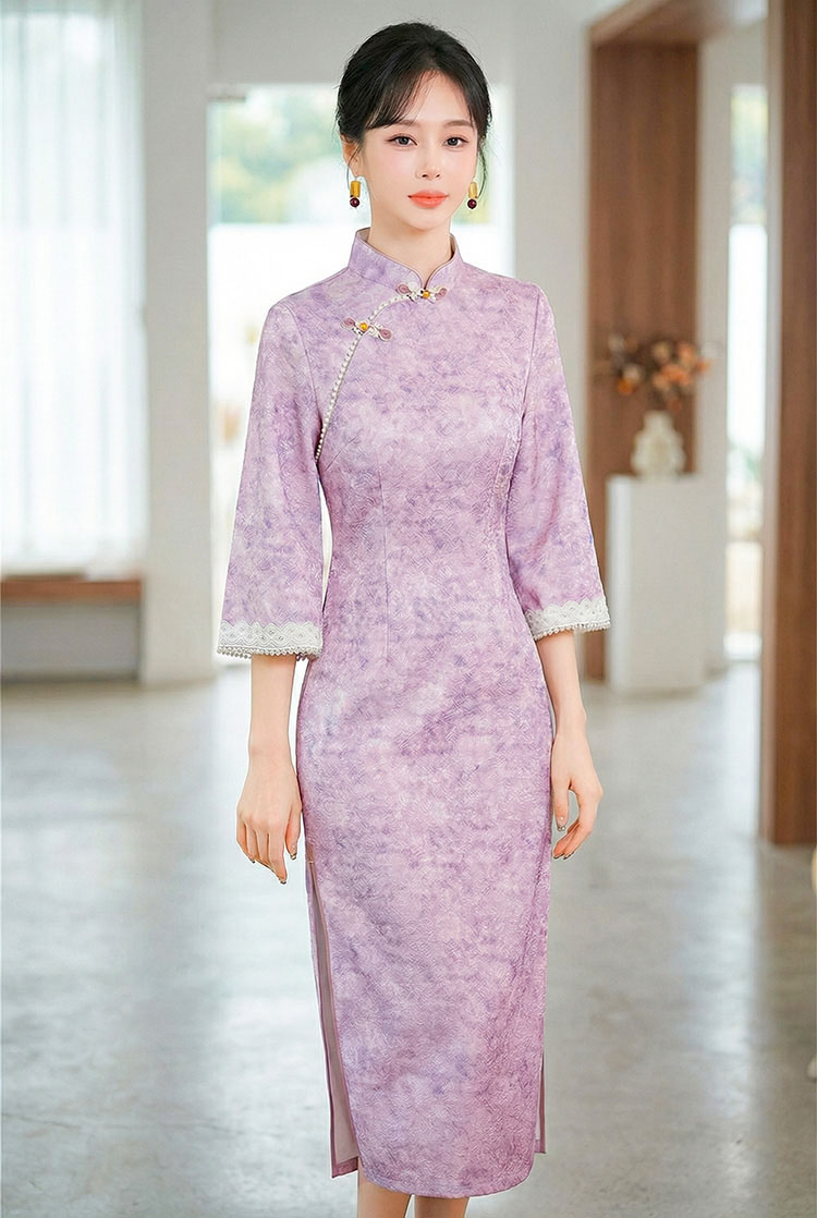 | Feature | RoundNeckline Dating HighNeckline DinnerC Cheongsam Plus Slit FloraM FloralM Purple |