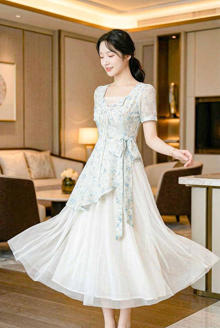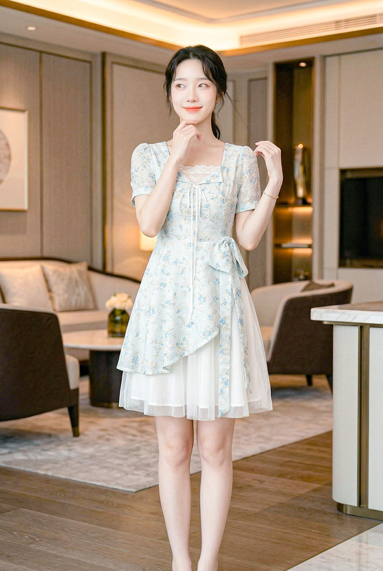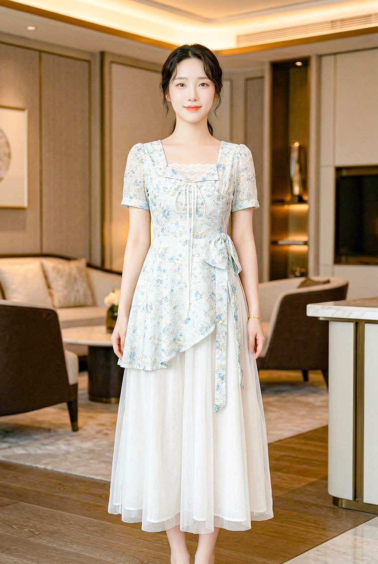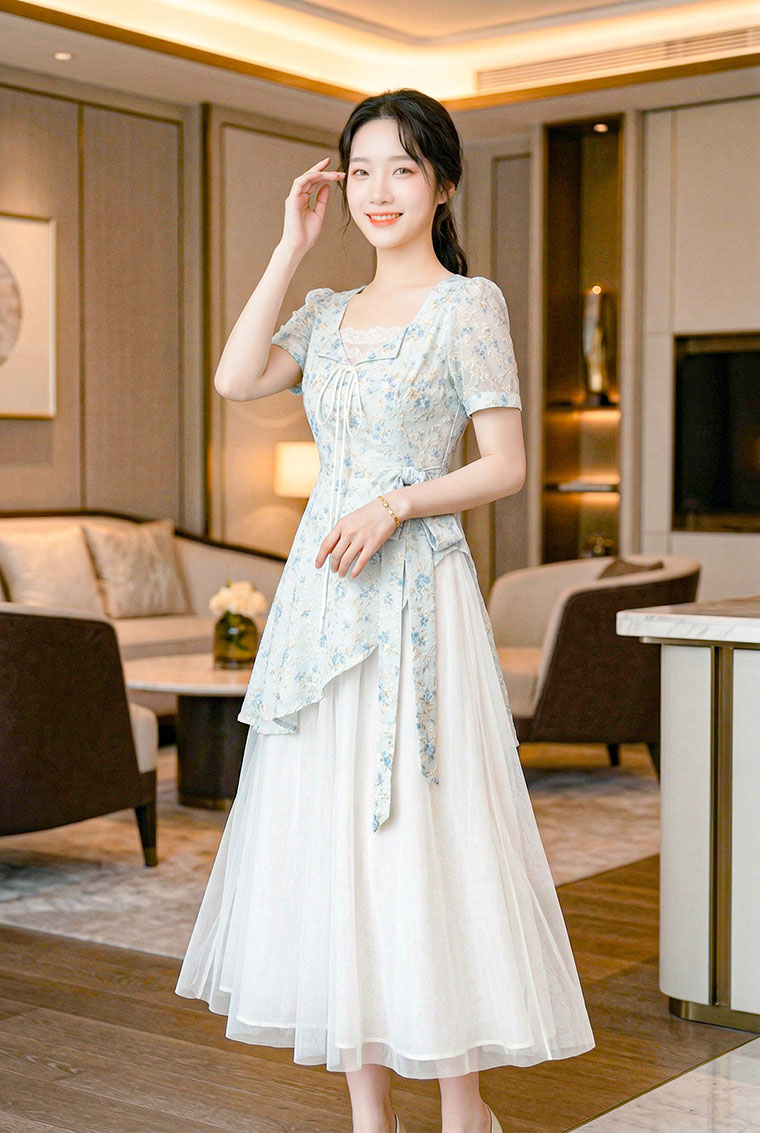 | Feature | SquareHeartNeckline Dating Dinner Party Plus PuffS FloraM Blue Pink |