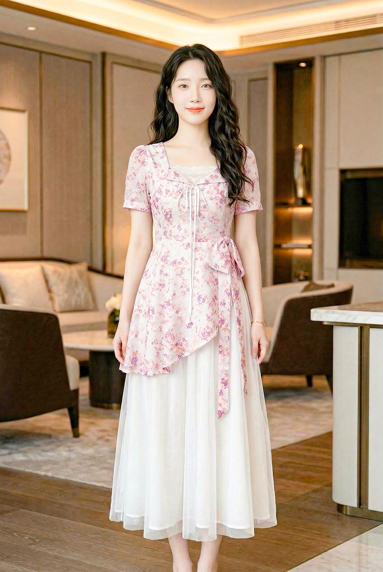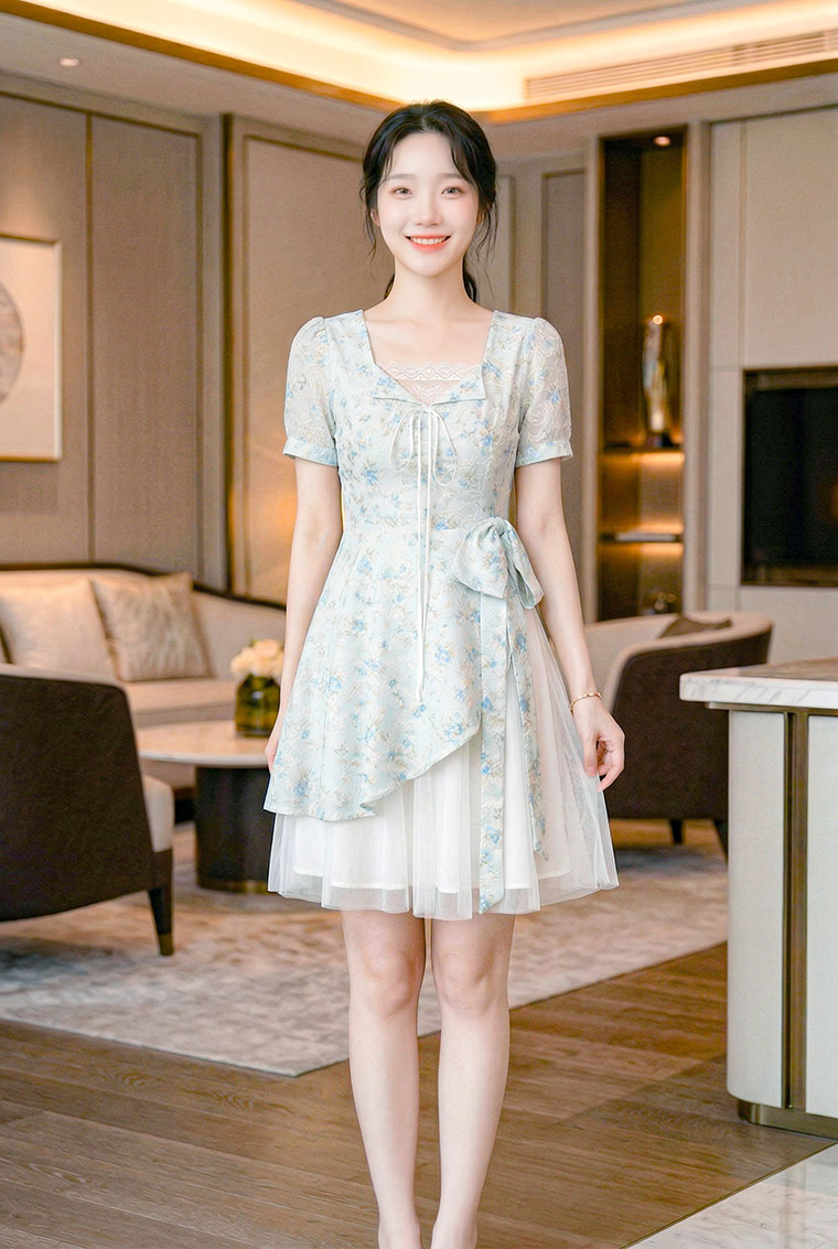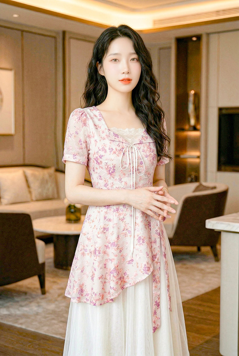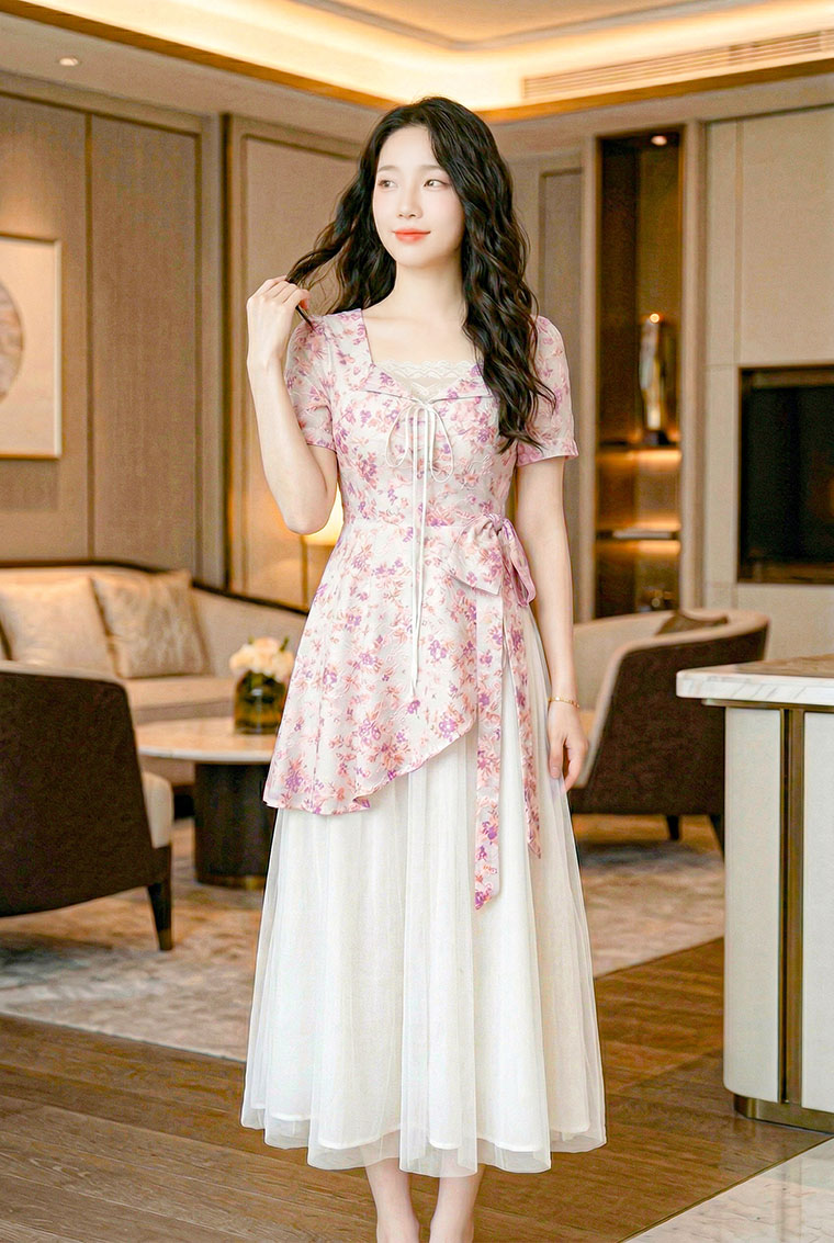 | Feature | SquareHeartNeckline Dating Dinner Party Plus PuffS FloraM Blue Pink |