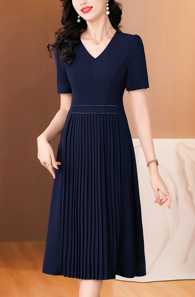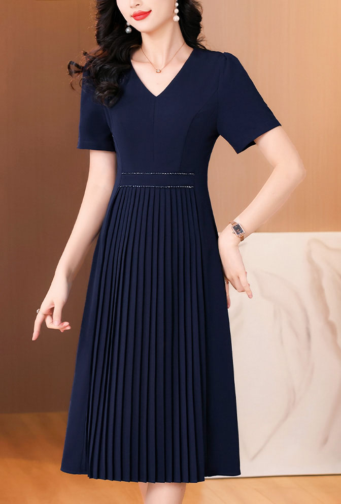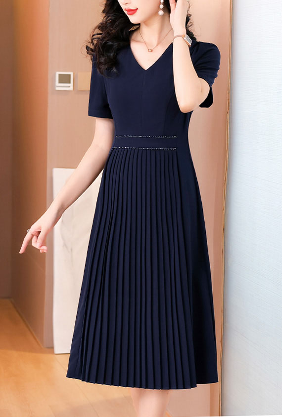 Feature | VNeckline Dating DinnerC OfficeC Plus Pleated PlainP Blue |