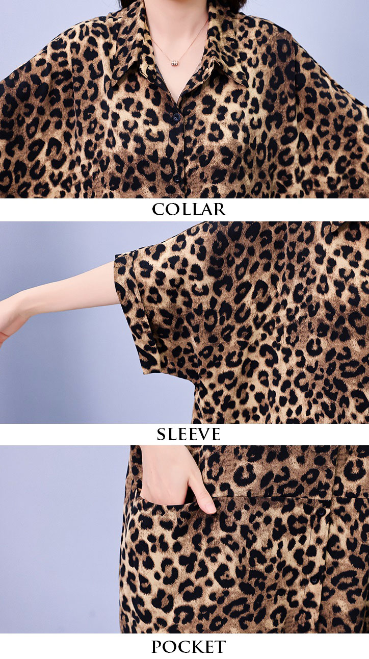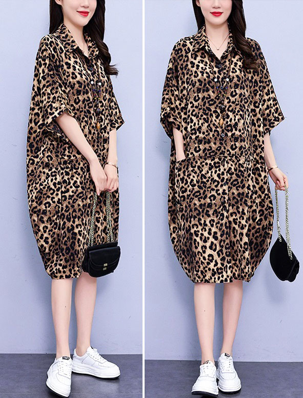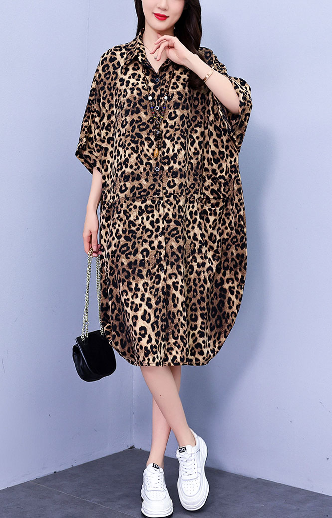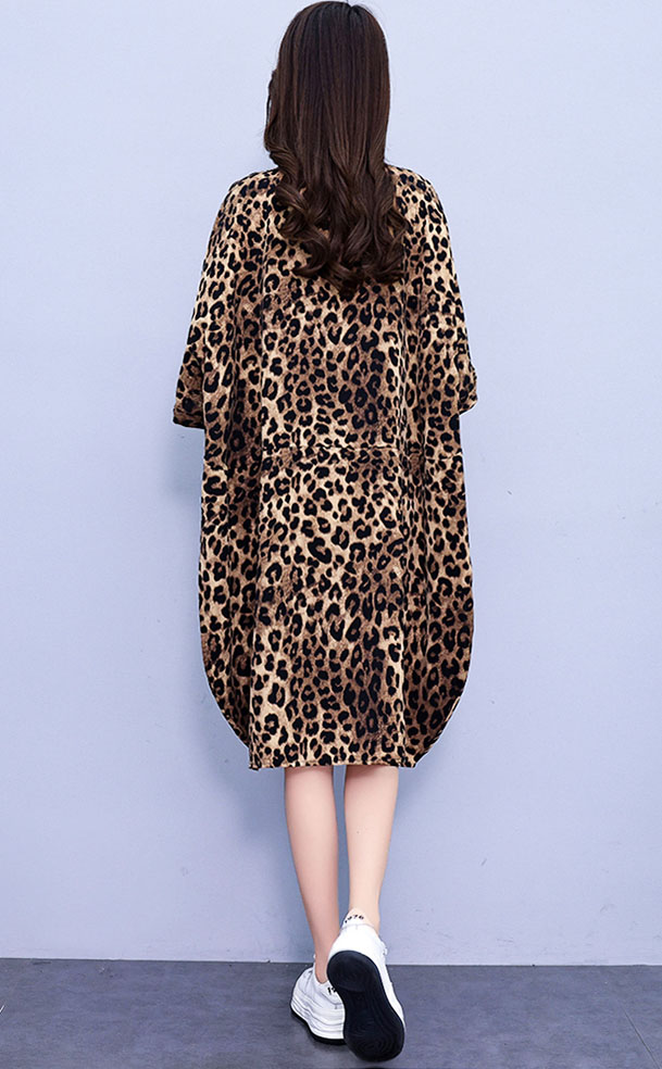 Feature | RoundNeckline Dating EPlus Casual OfficeC A-Line Pockets Irregular Collar Leopard Brown |