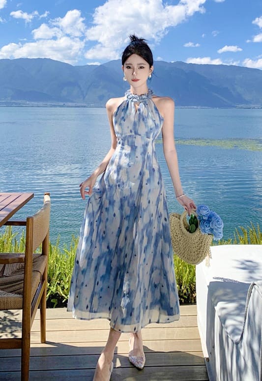 | Feature | HalterNeckline Dating DinnerC Beach Girlish KeyHole MixC Blue |