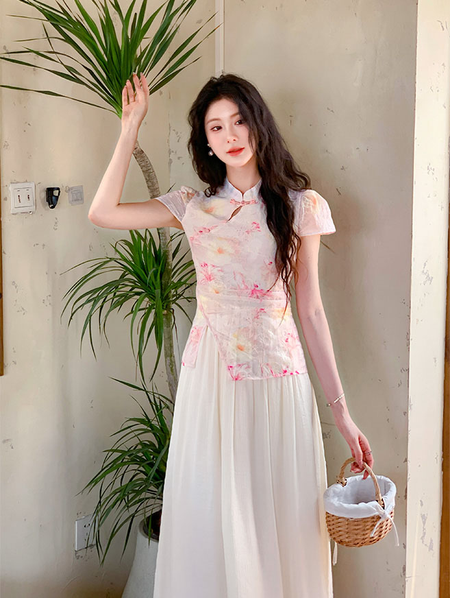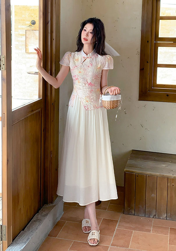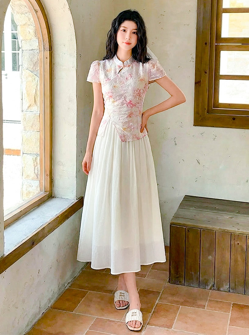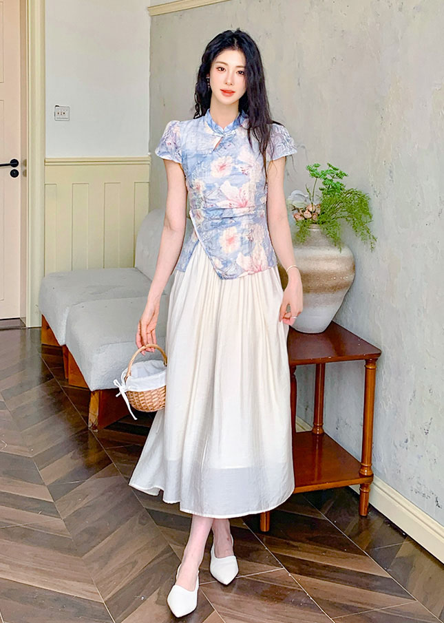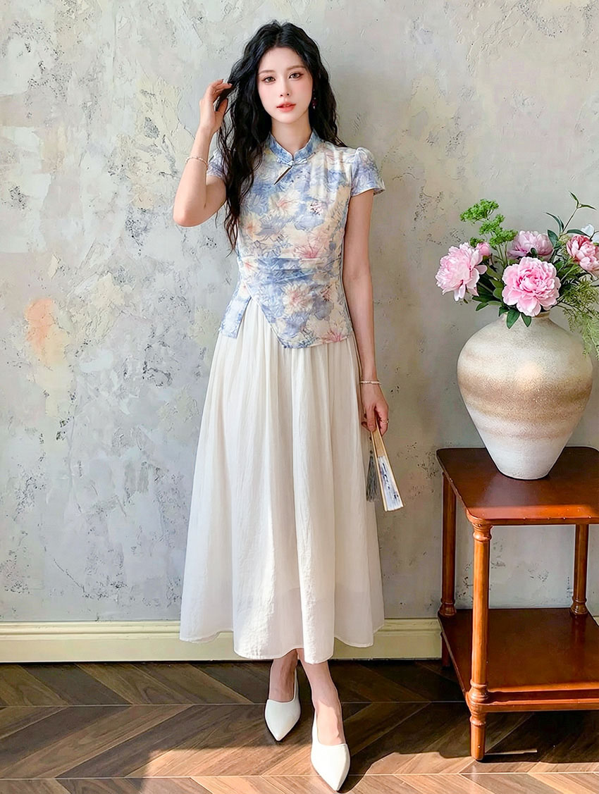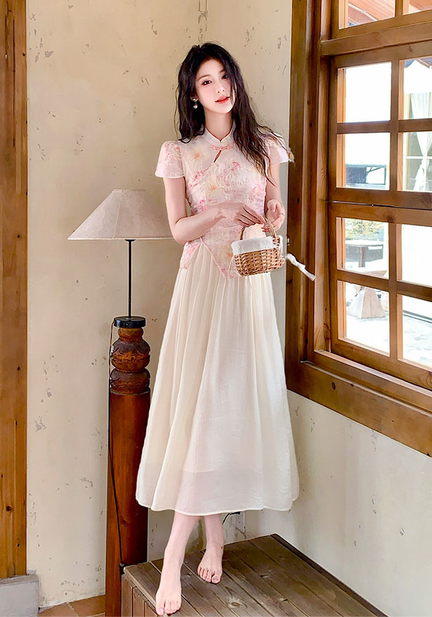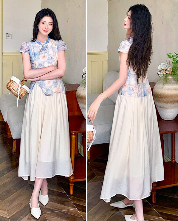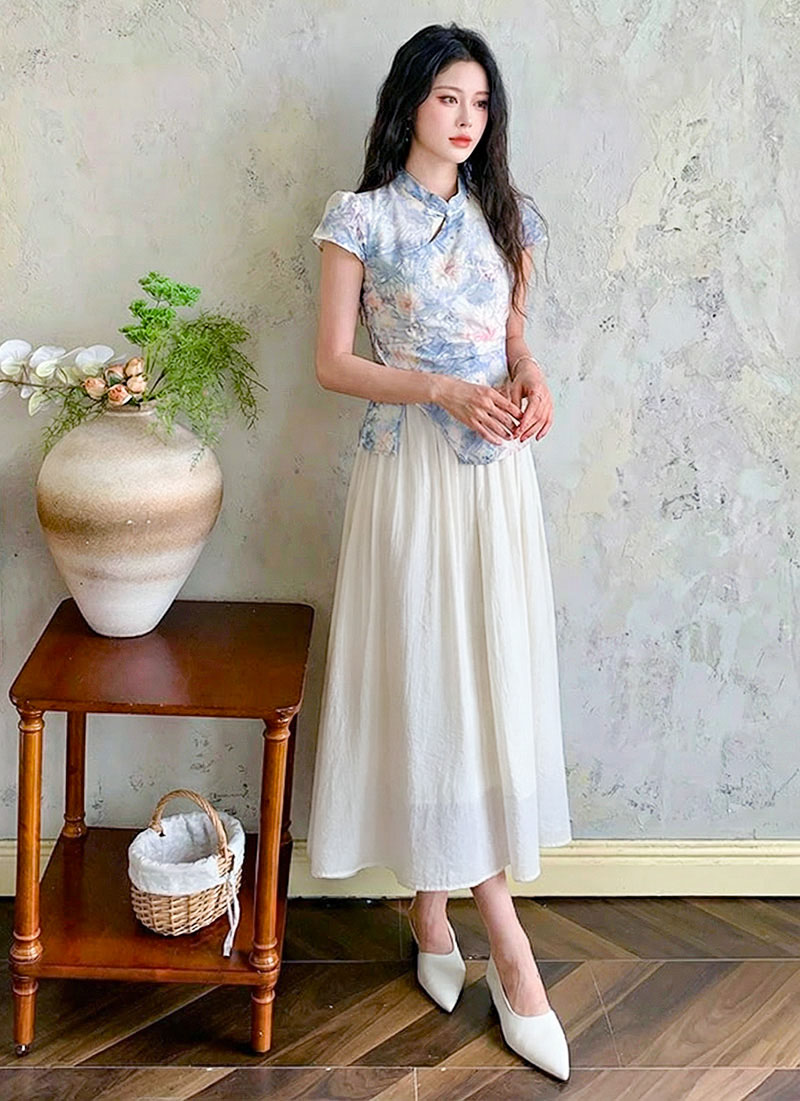 | Feature | RoundNeckline Dating HighNeckline DinnerC Cheongsam FloraM KeyHole FloralM Blue Pink |