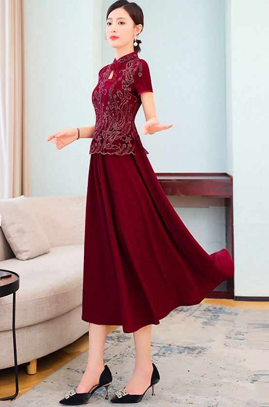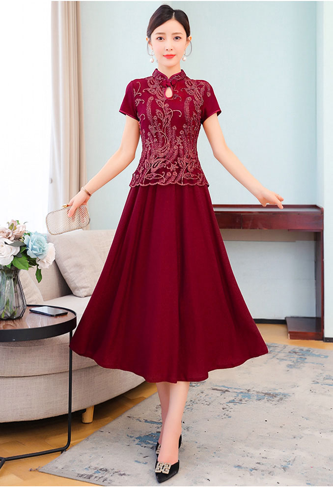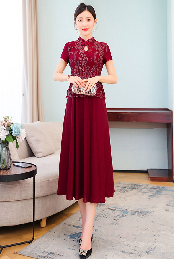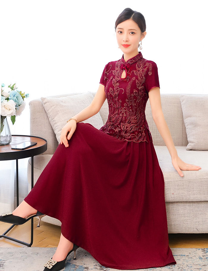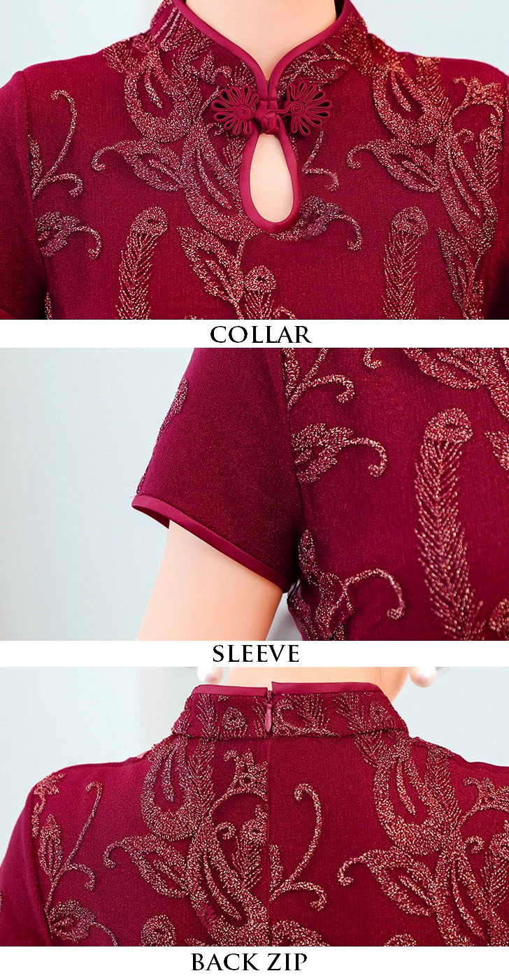 | Feature | RoundNeckline Dating HighNeckline DinnerC Cheongsam FloraM KeyHole Bling FloralM Plus Red |