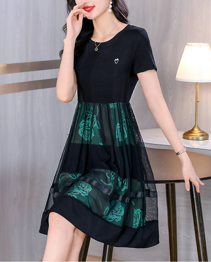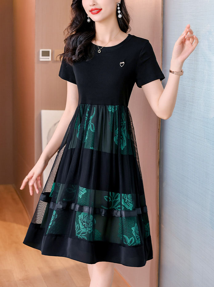 | Feature | RoundNeckline Dating DinnerC Tiered Layers Plus FloraM FloralM Green Pink |