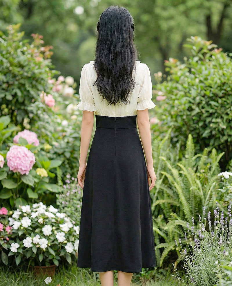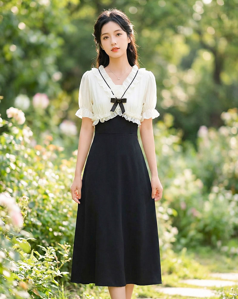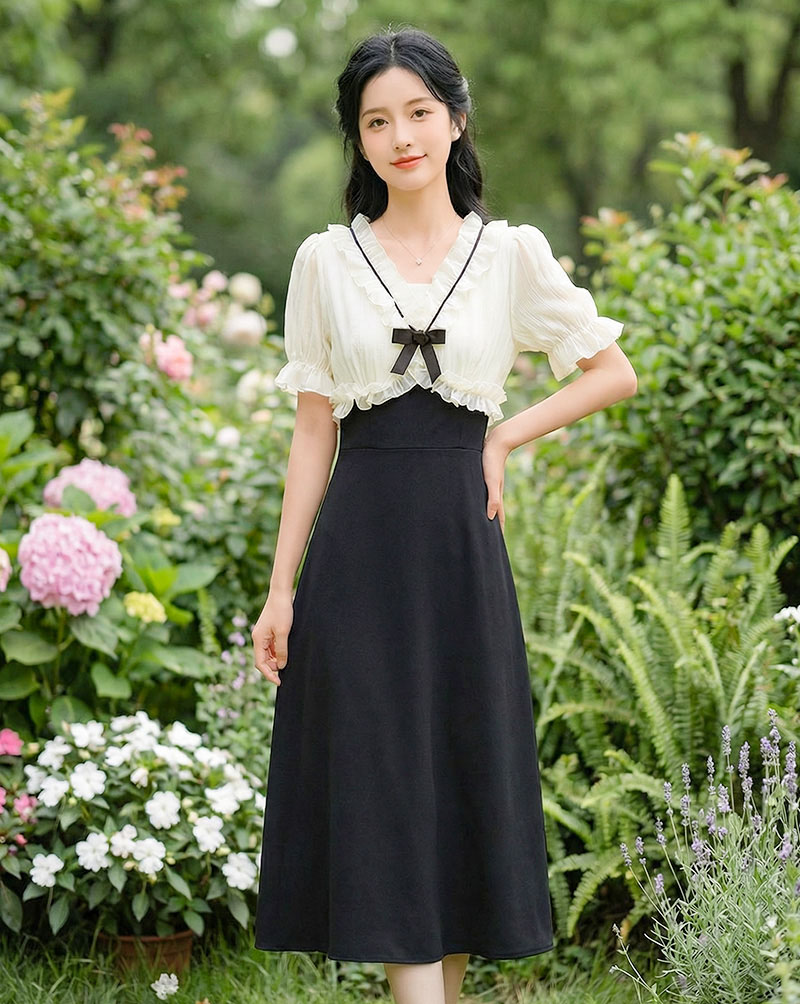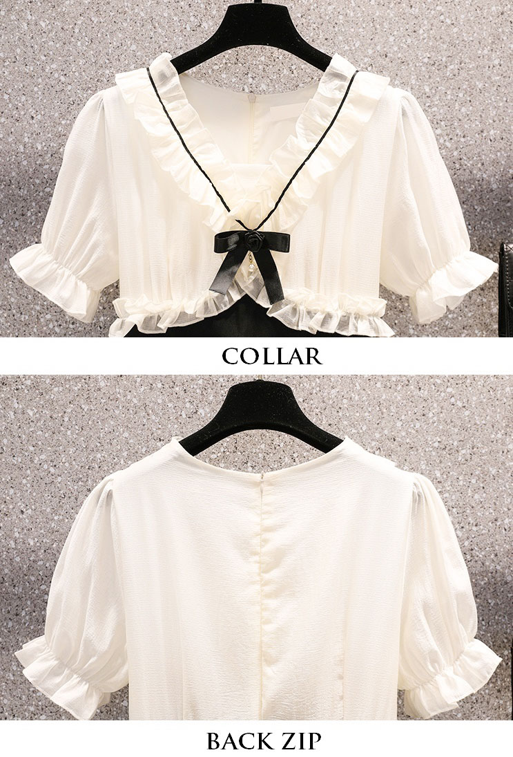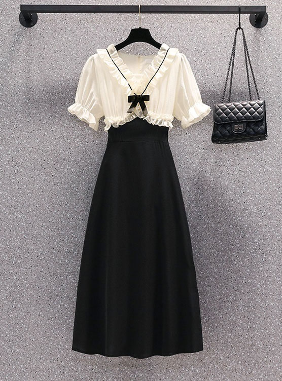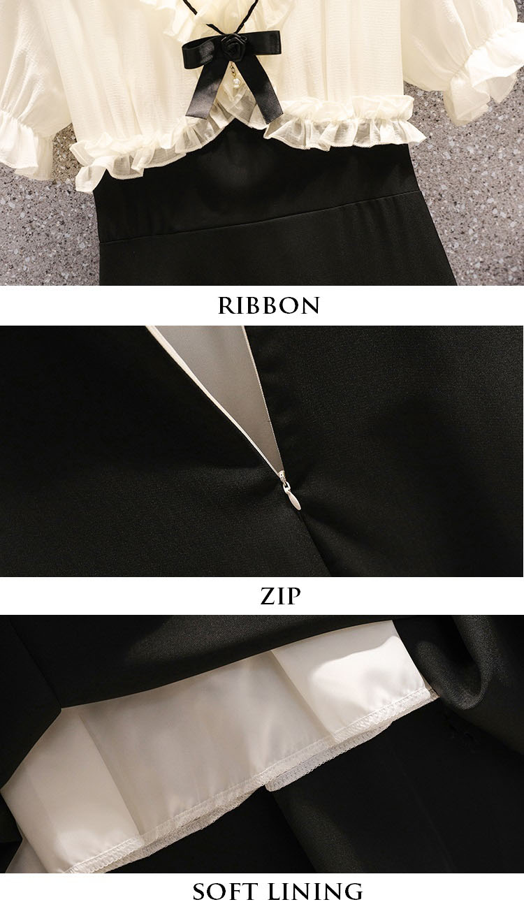 | Feature | VNeckline Dating DinnerC Ribbon PuffS Girlish Ruffle PlainM Plus Black |