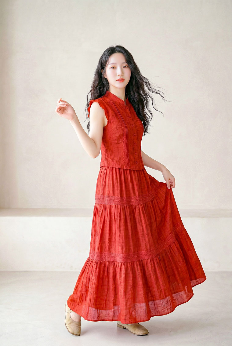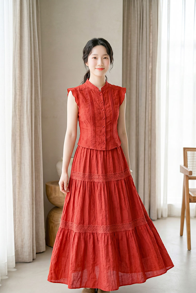 | Feature | RoundNeckline Layers Cake PlainP Dating DinnerC Party FloraP Red White |