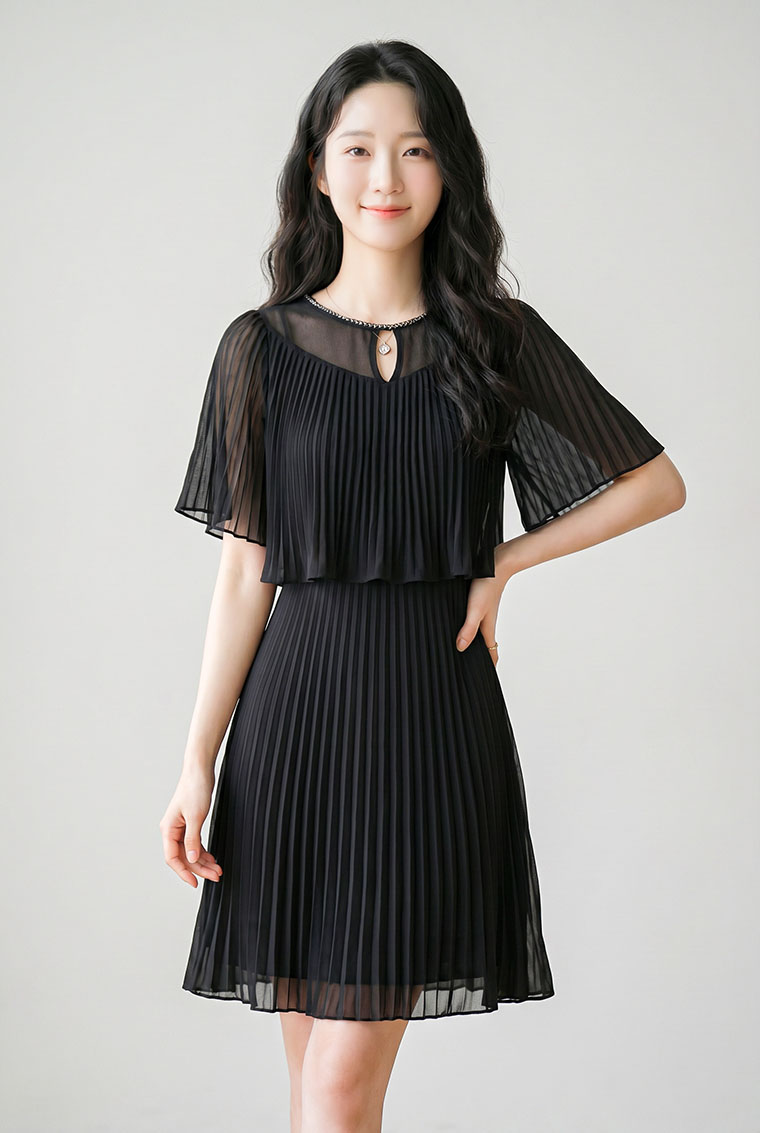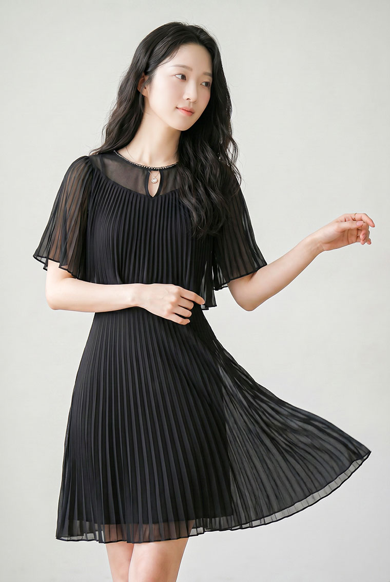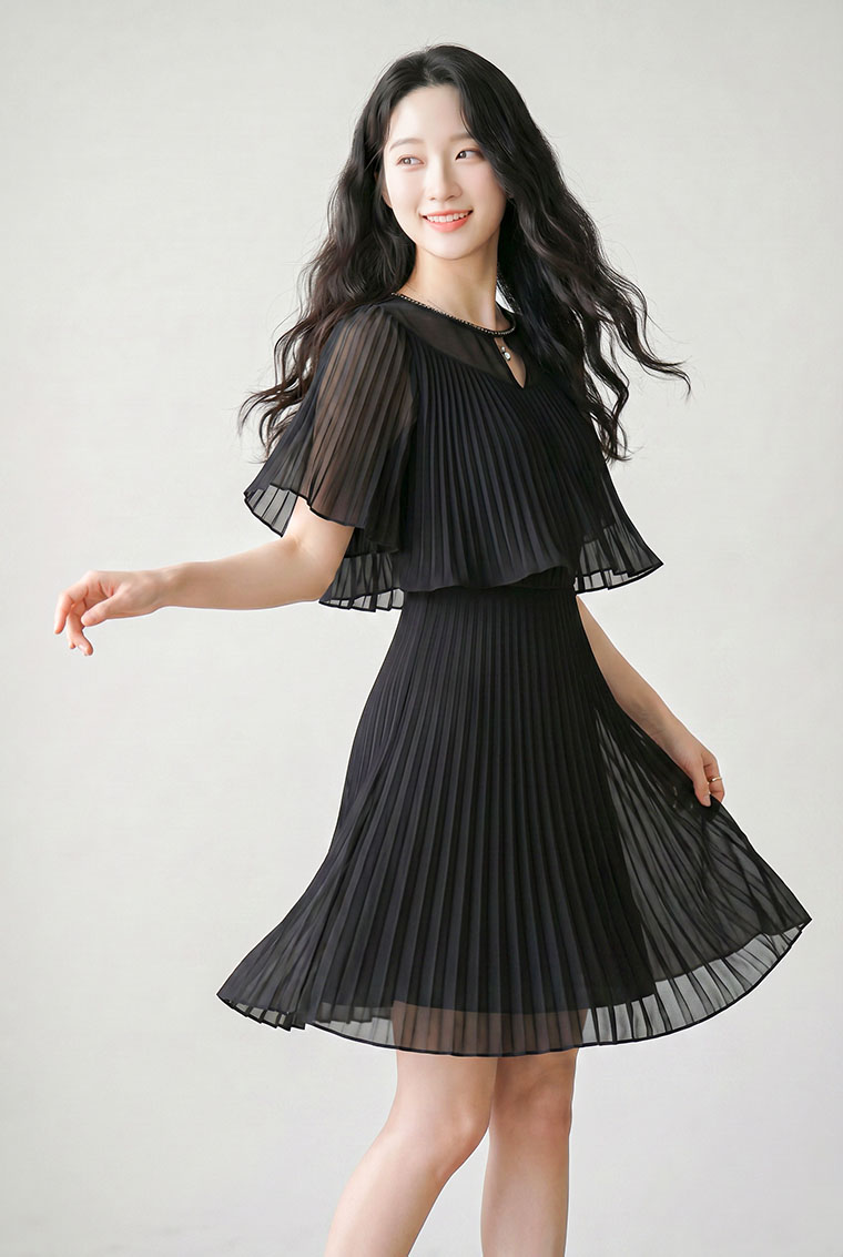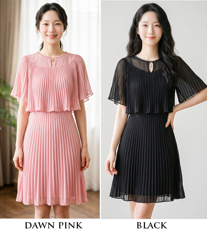 | Feature | RoundNeckline Layers Dating Party CapeSleeve PlainP Pink Black |
