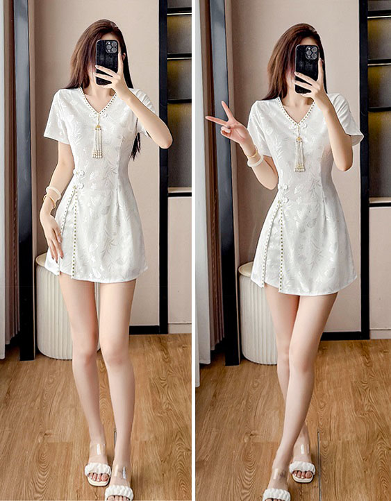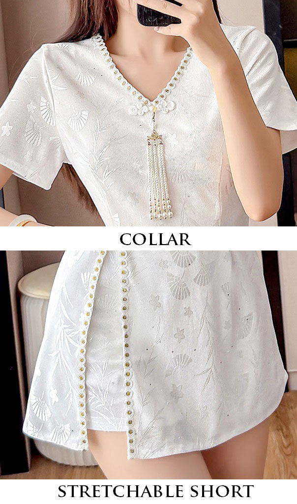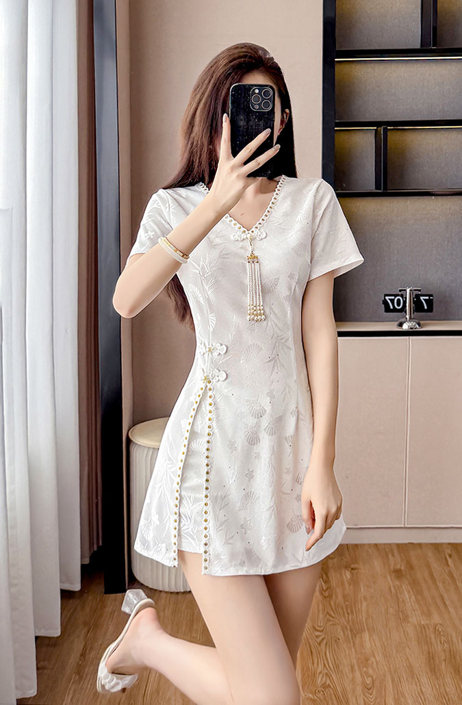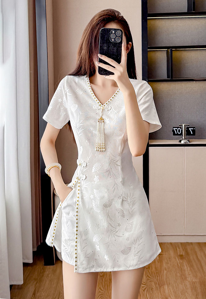 | Feature | VNeckline Dating Pockets DinnerC Girlish Irregular Slit FloraM FloralM Cheongsam Tassels Plus White |