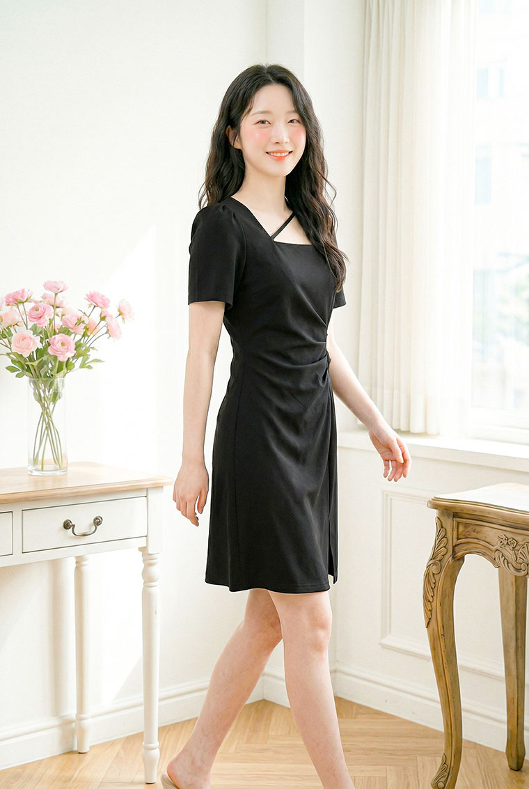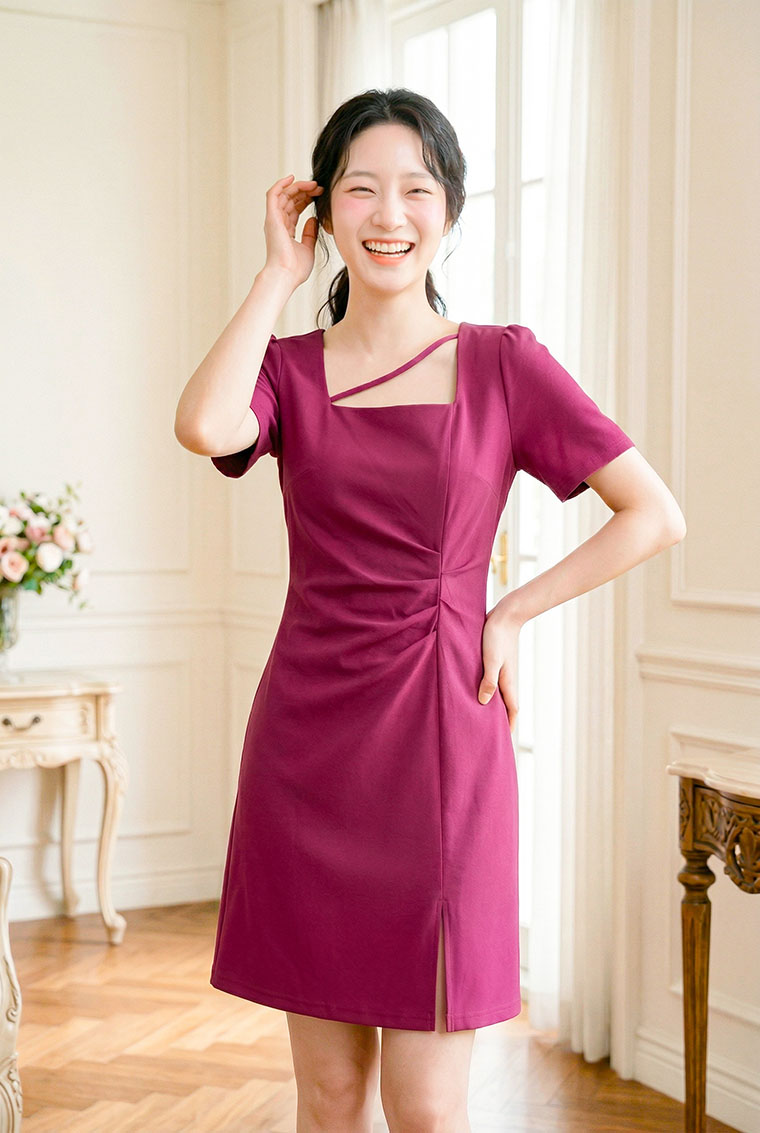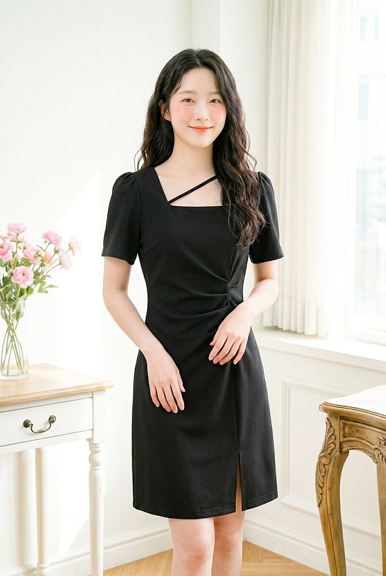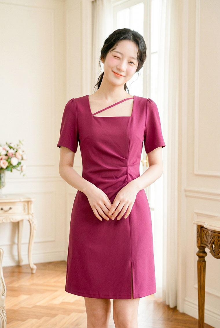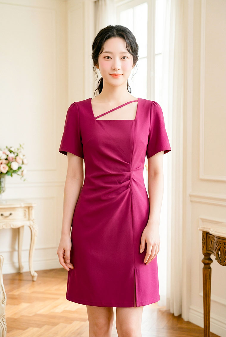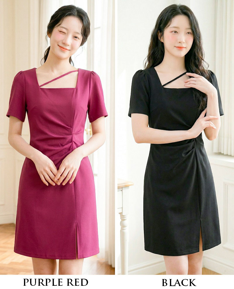 | Feature | SquareNeckline Crease Irregular SlitCut Party Dating Dinnner Pink Black |