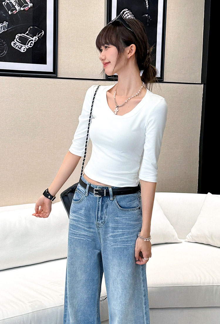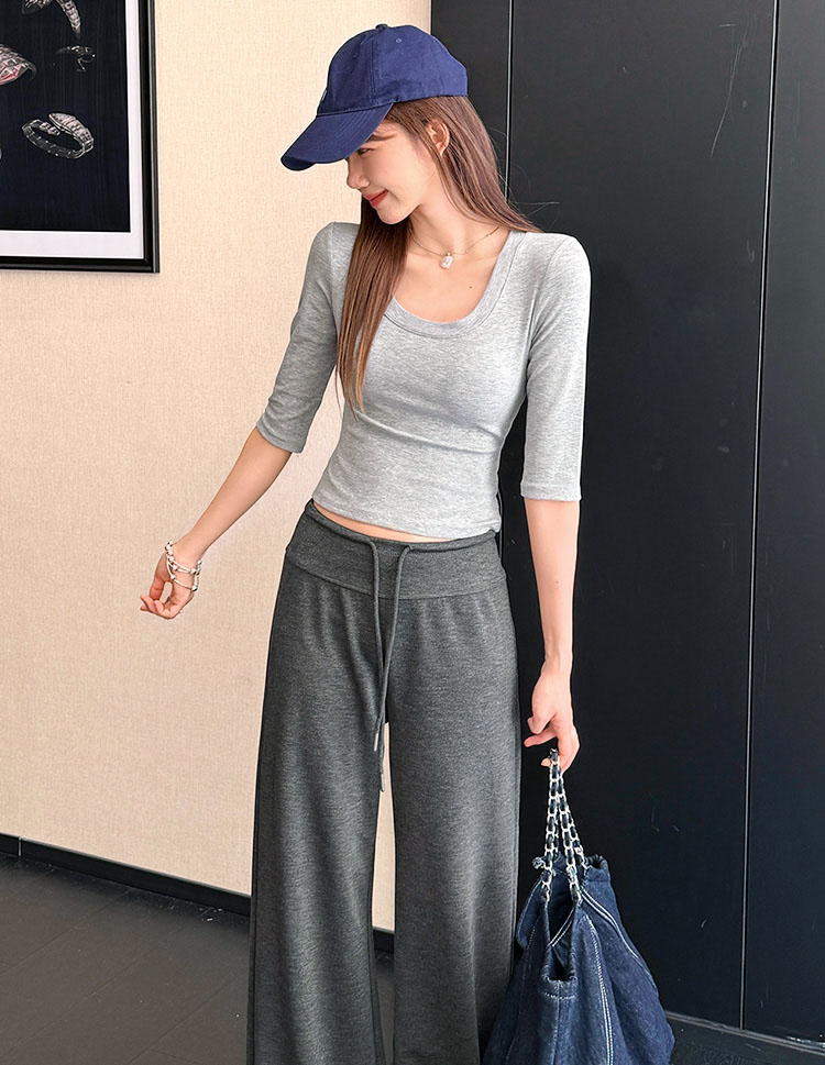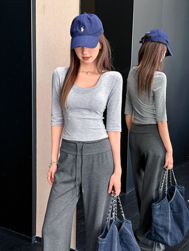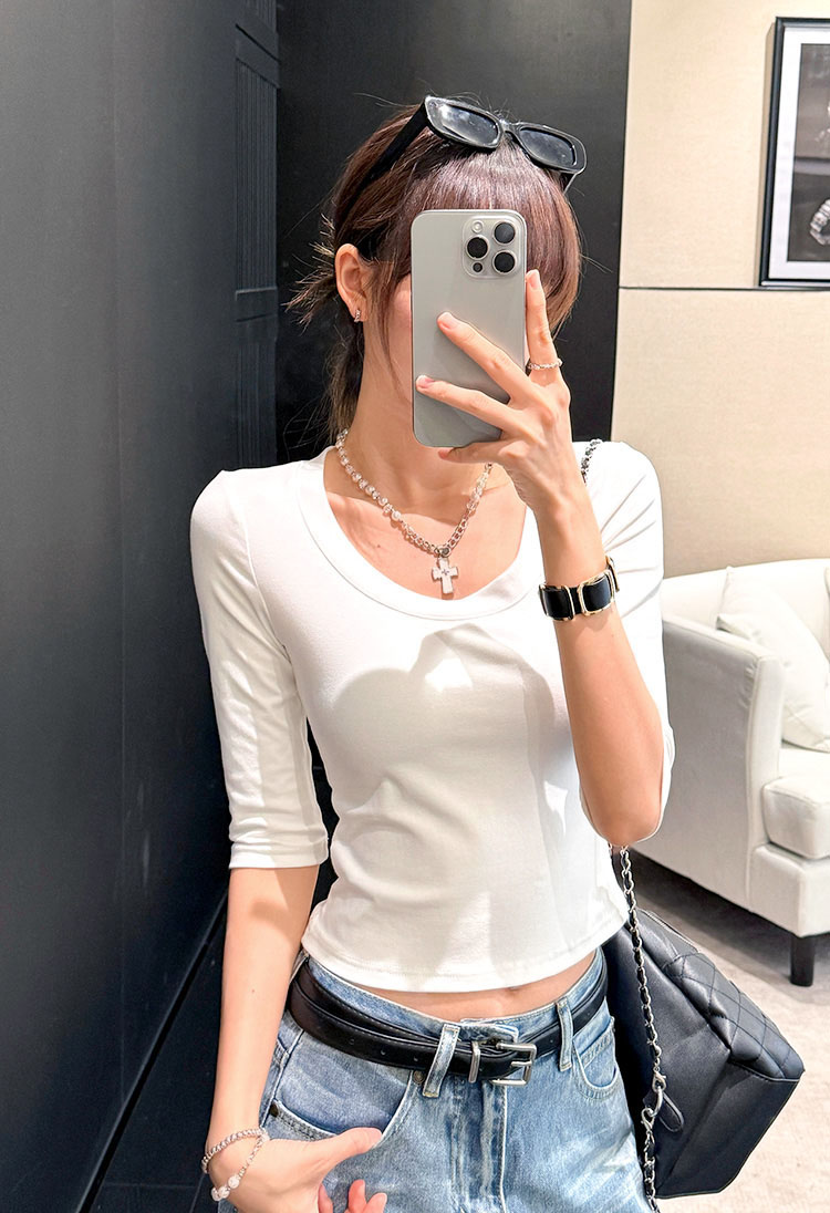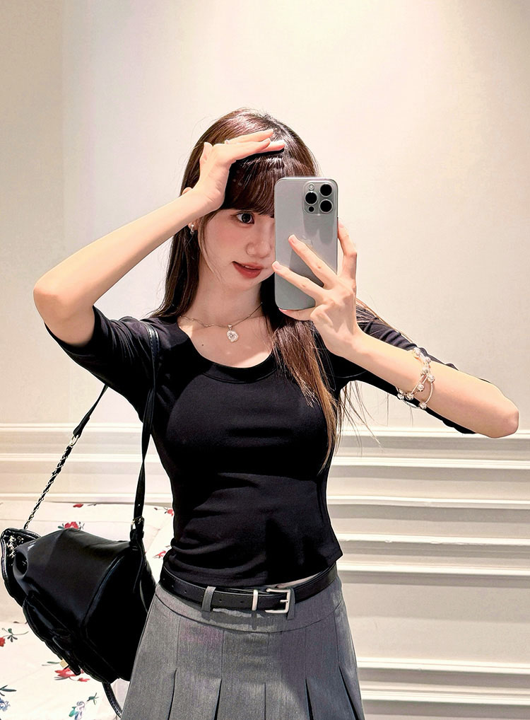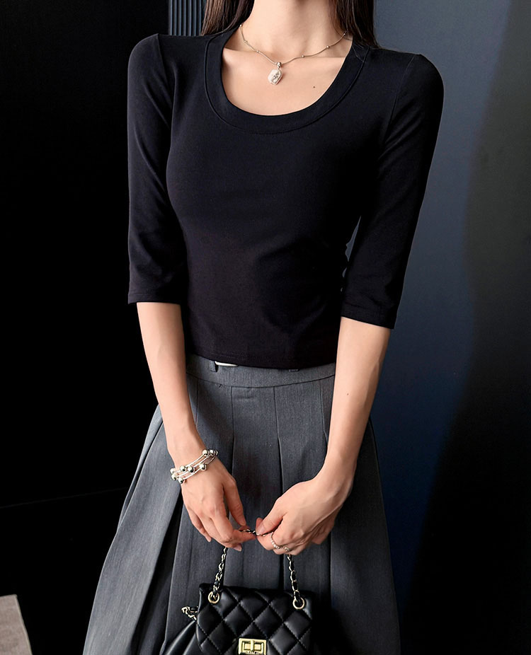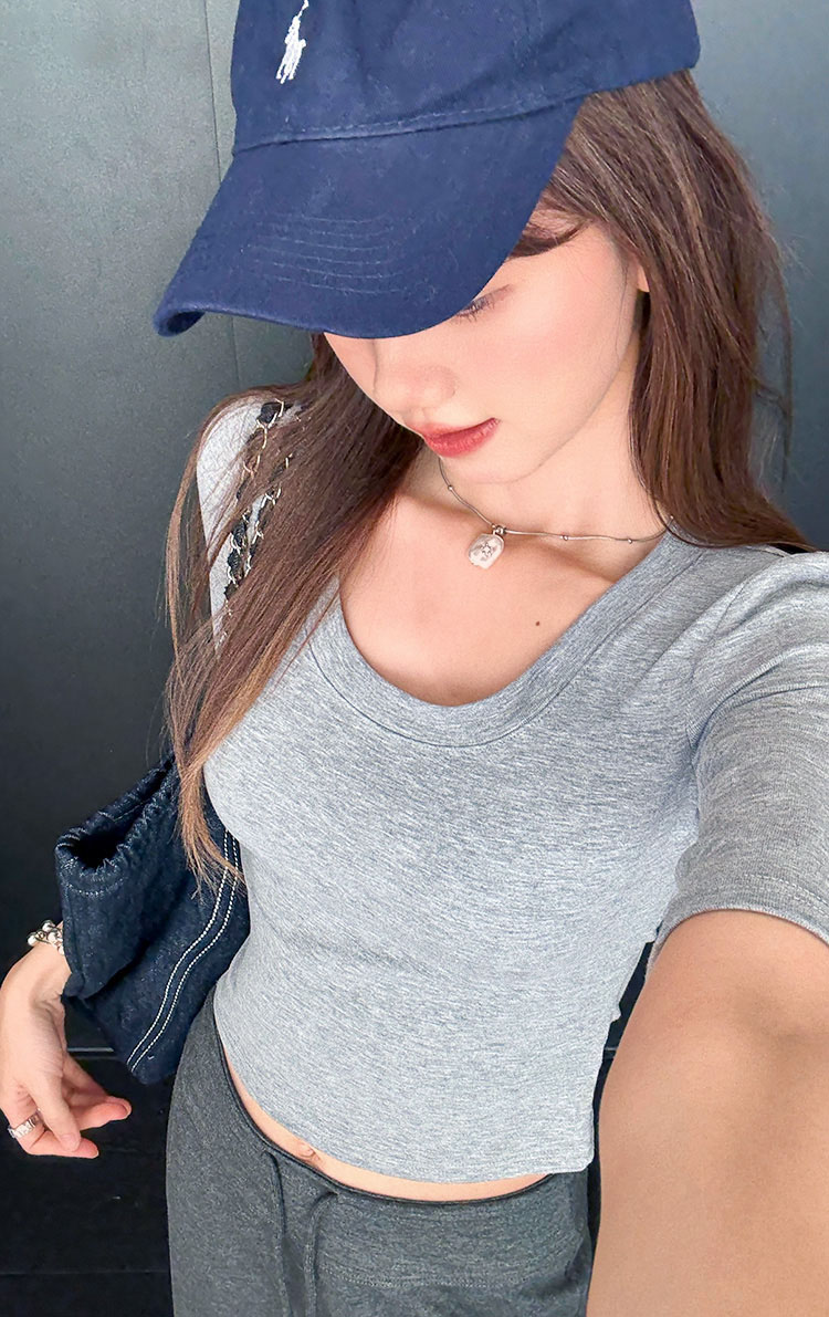 Feature | UNeckline T-Shirt Bodycon Dating Casual CropTop PlainP Black Blue Grey White |