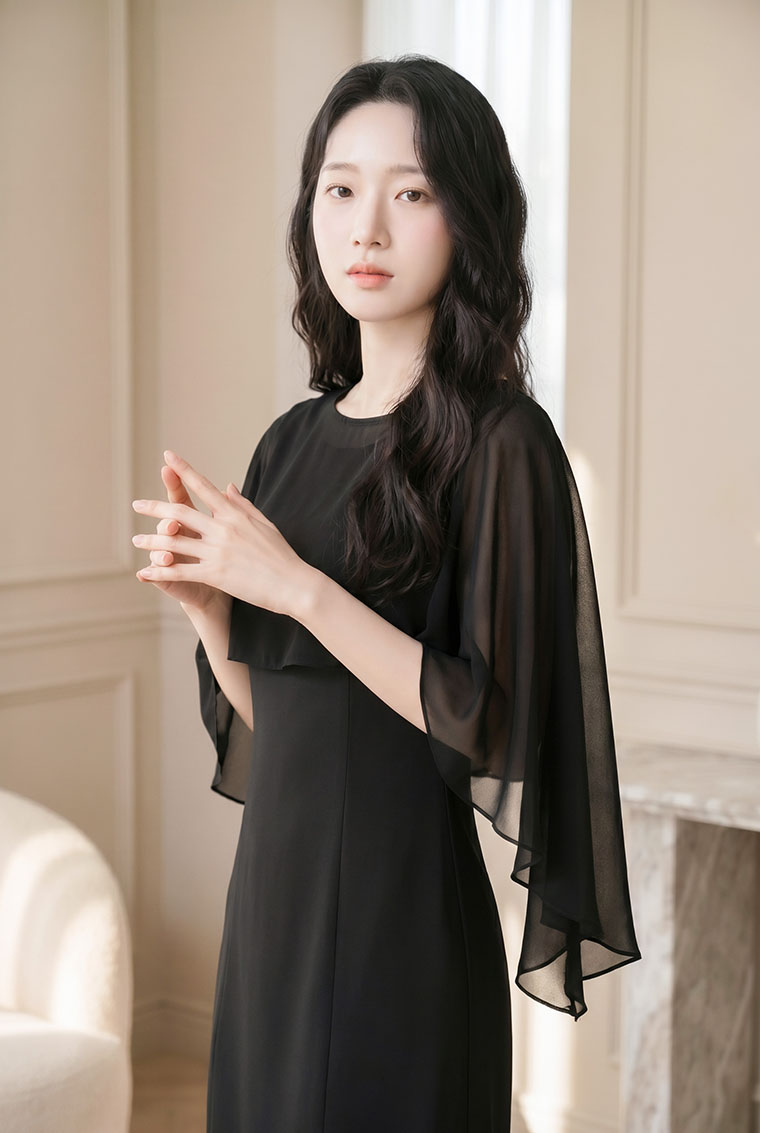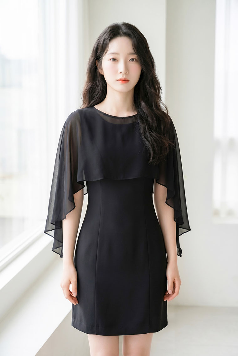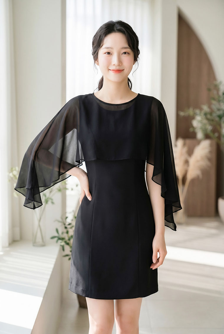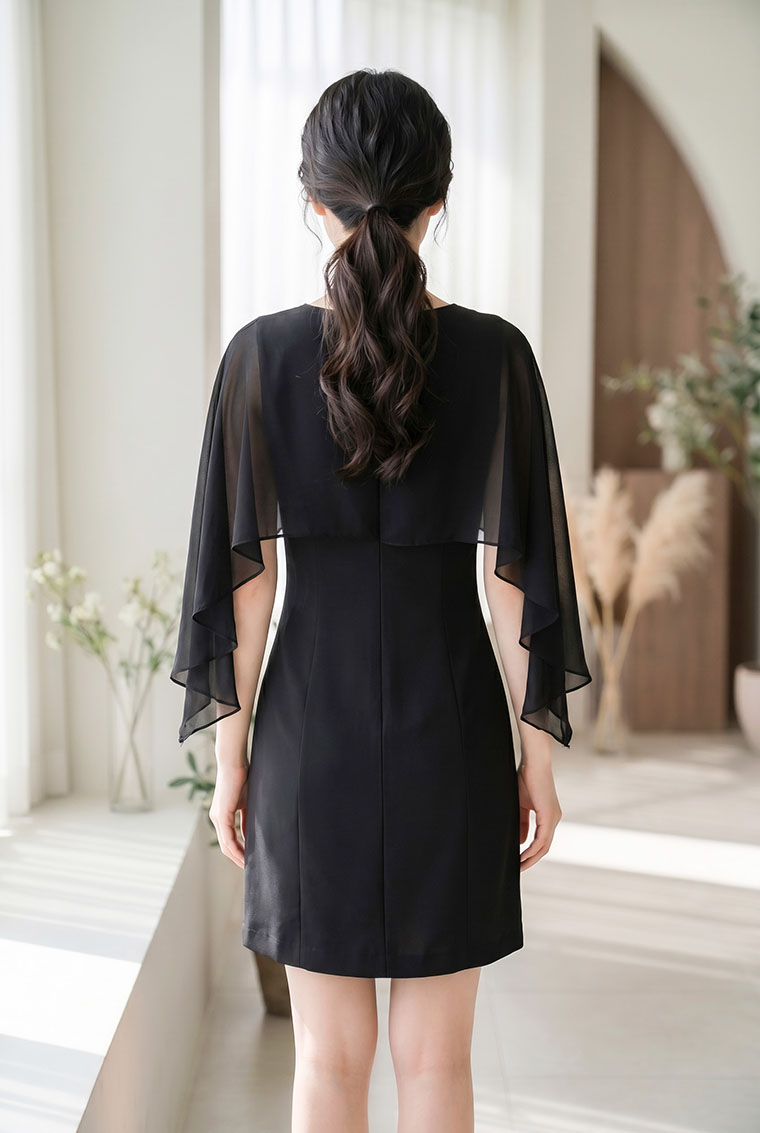| Feature | RoundNeckline Layers Dating Party CapeSleeve PlainP Black |