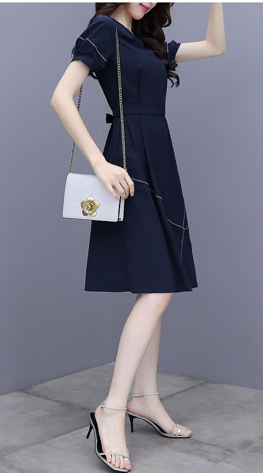 | Feature | RoundNeckline Dating DinnerC Ribbon Girlish Pockets A-Line PlainM Plus Blue Red |