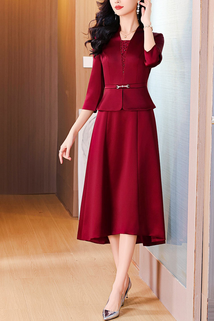 Feature | SquareNeckline Dating OfficeC DinnerC High-Low Plus Irregular PlainP Red |