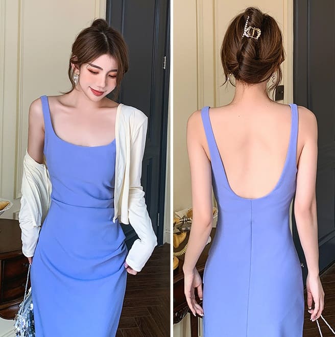 | Feature | SquareNeckline Dating ESmall Sling Backless Wrinkle PlainP Black Blue Brown Khaki Pink |