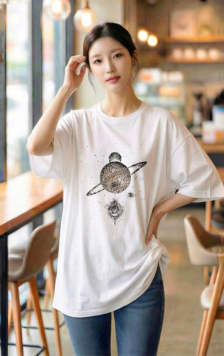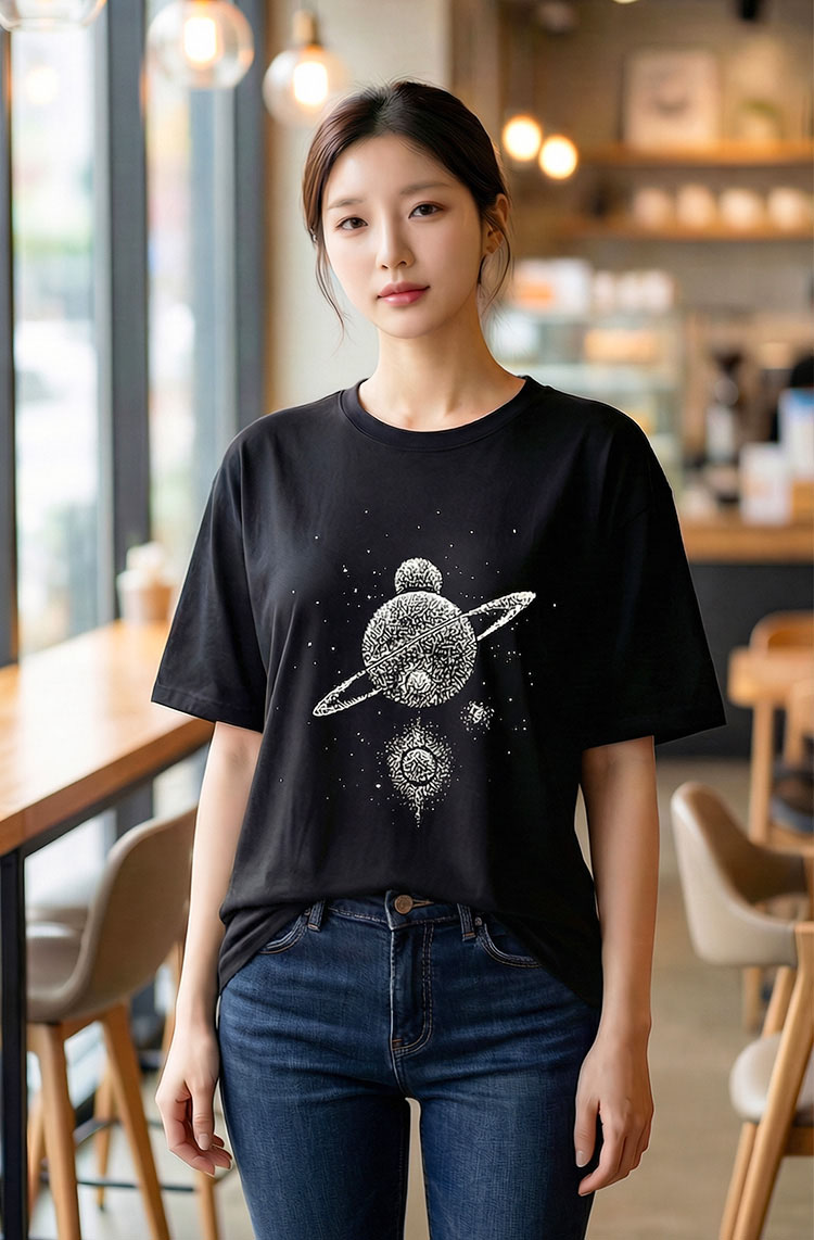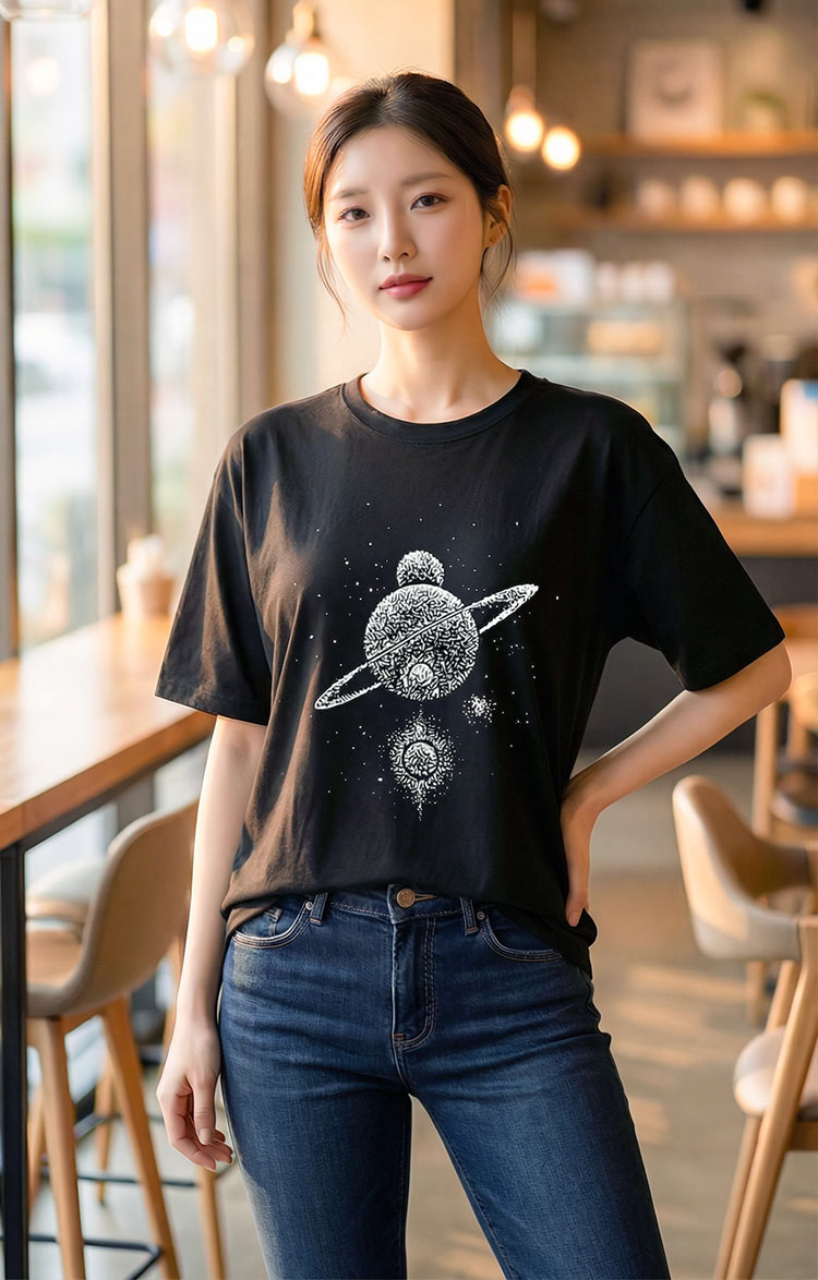 | Feature | RoundNeckline EPlus Dating Casual T-Shirt Galaxy PlainM Black White |