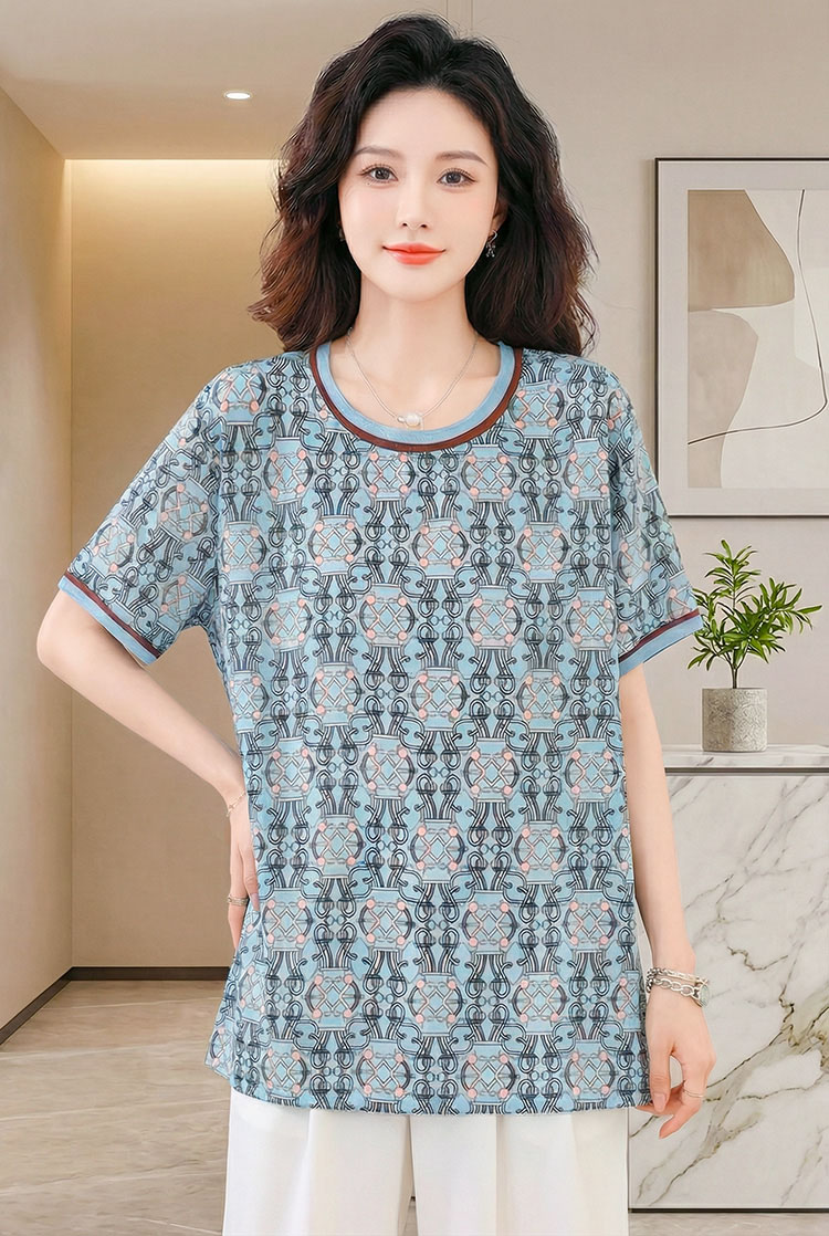 | Feature | RoundNeckline EPlus Dating Casual A-Line T-Shirt MixC Blue |