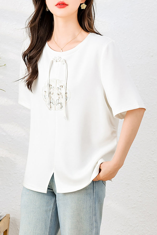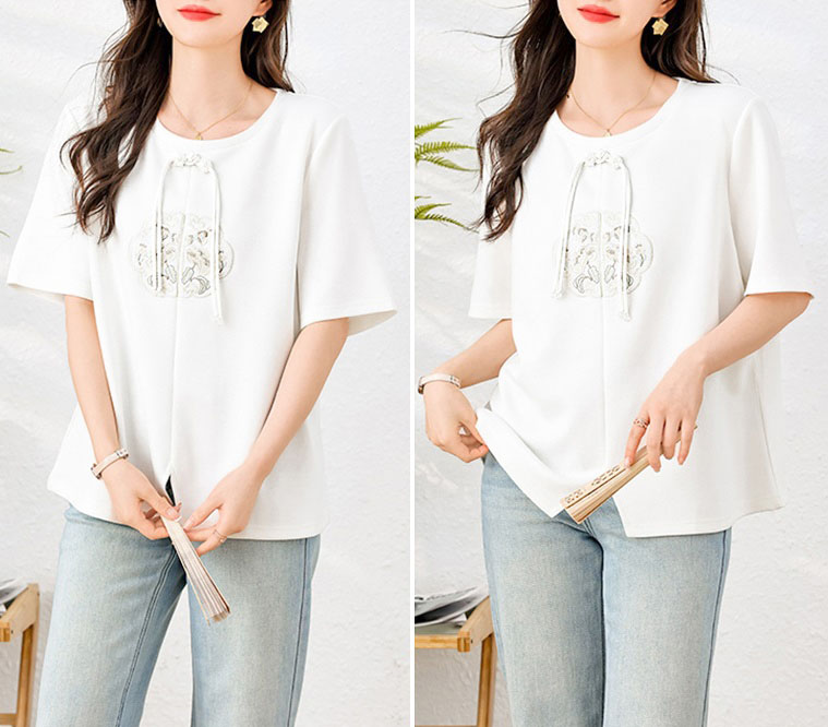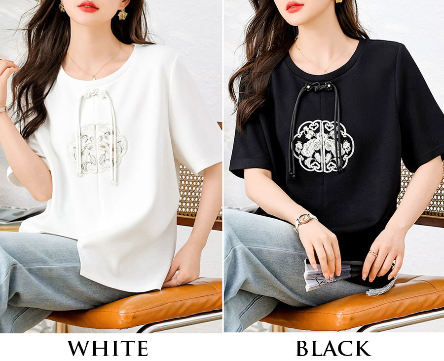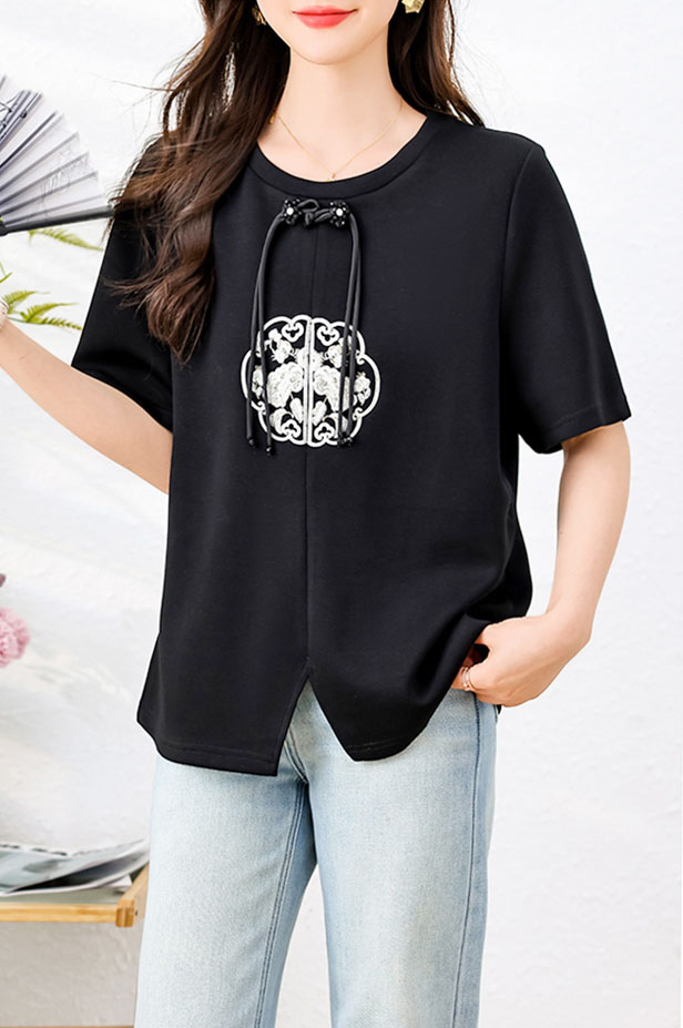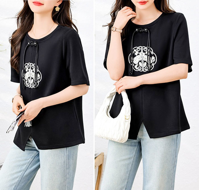 | Feature | RoundNeckline EPlus Dating DinnerC T-Shirt Slit PlainM Black White |