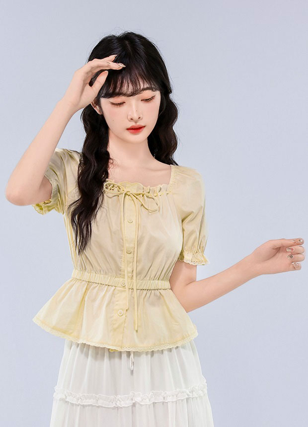 | Feature | SquareNeckline Dating DinnerC Ribbon Girlish Peplum PuffS PlainP Yellow |